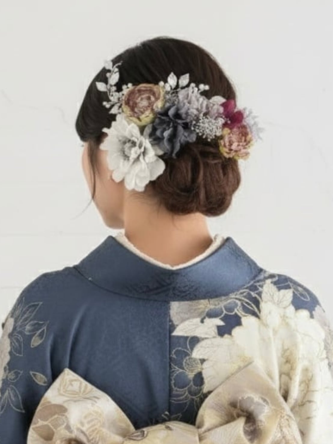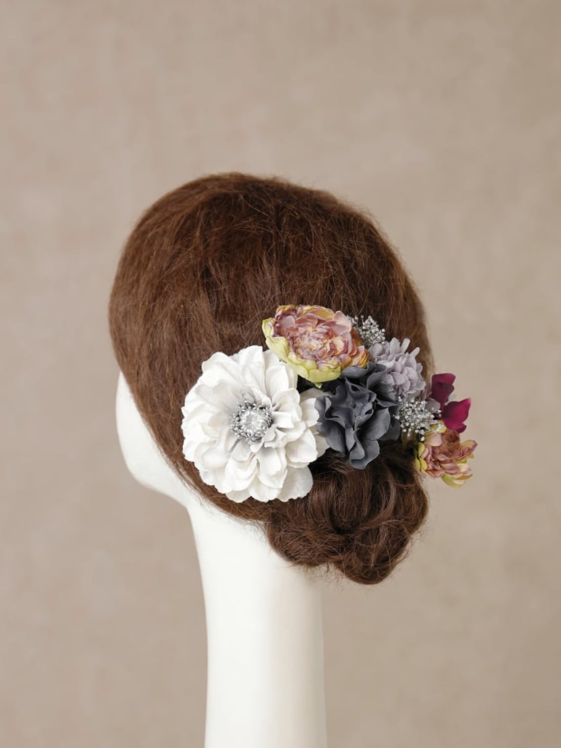 ダリア髪飾りは 、卒業式、袴、振袖、成人式、白無垢、色打掛、和装のシーンでのヘアパーツやヘッドドレスとして最適です。