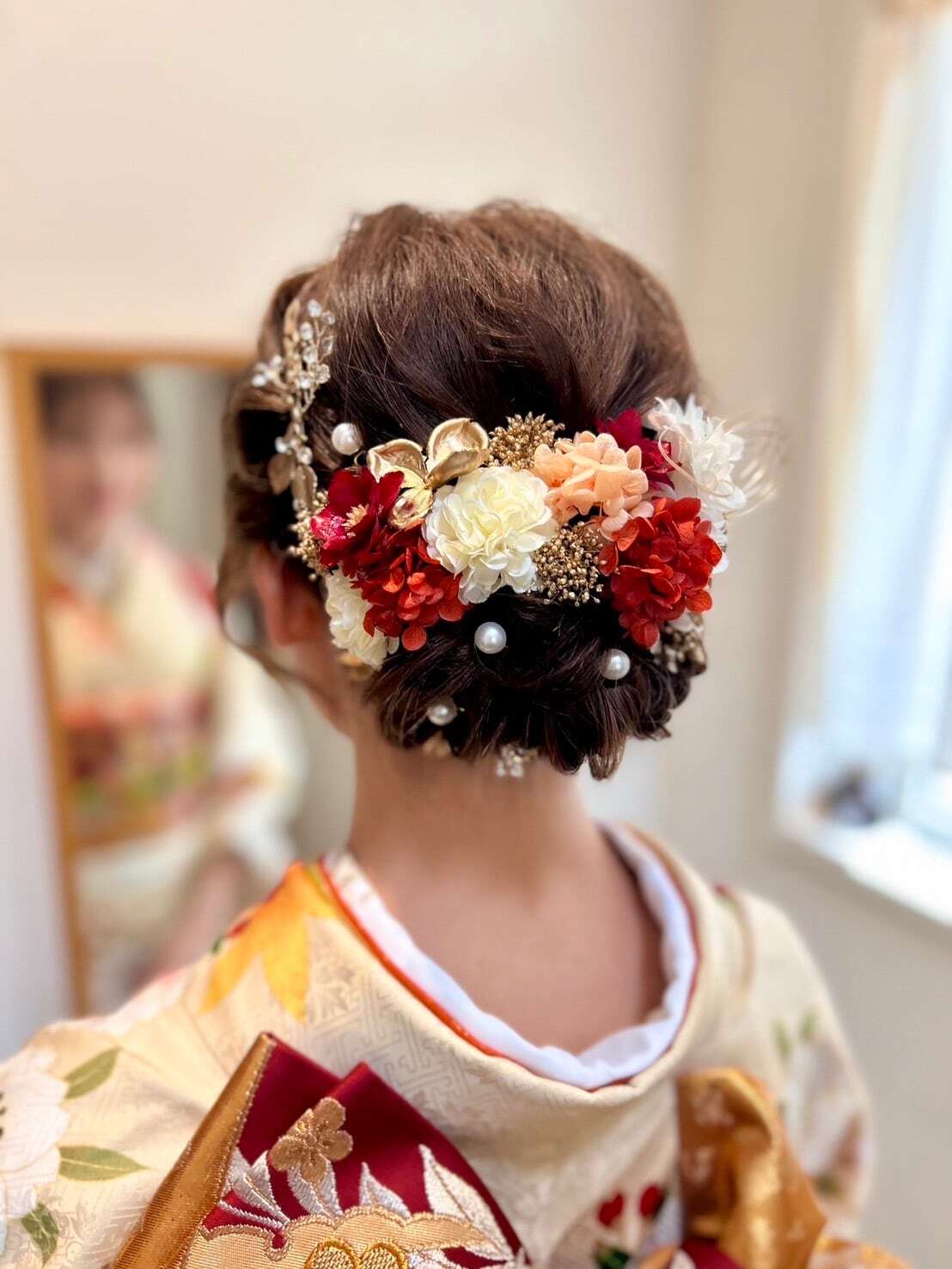 小枝ビジュー付き髪飾り|成人式 卒業式に映えるリボンヘア カチモリヘア タイトシニヨン