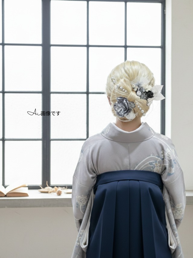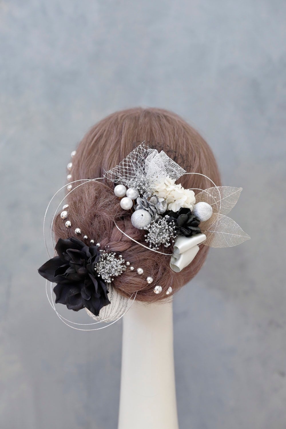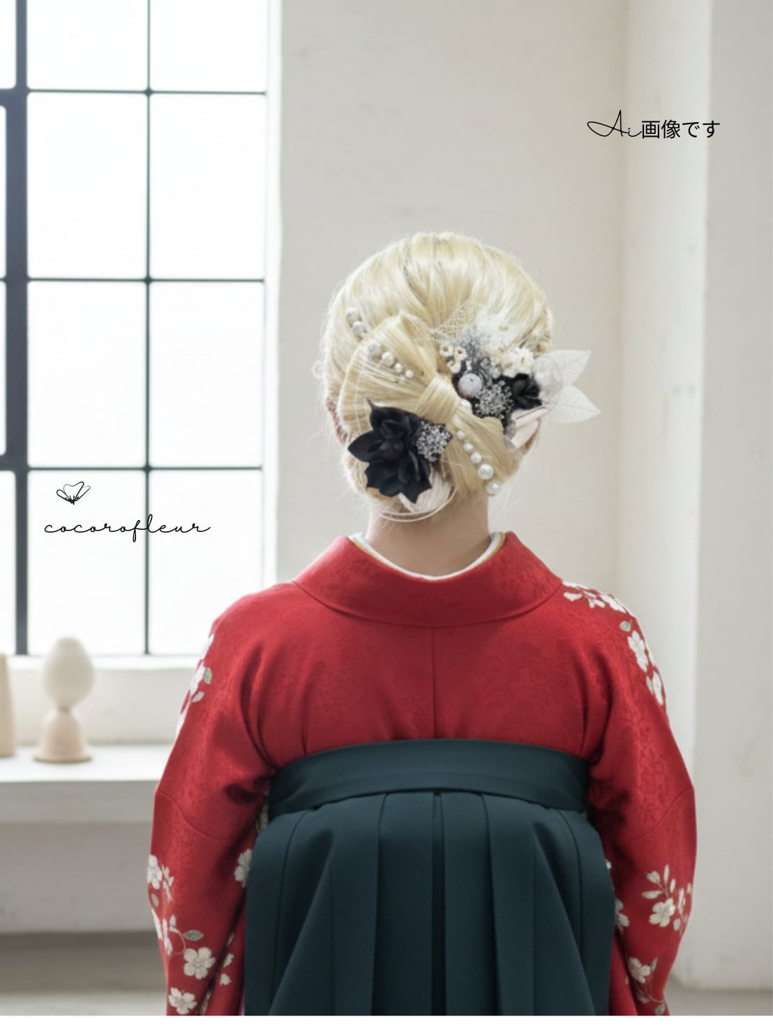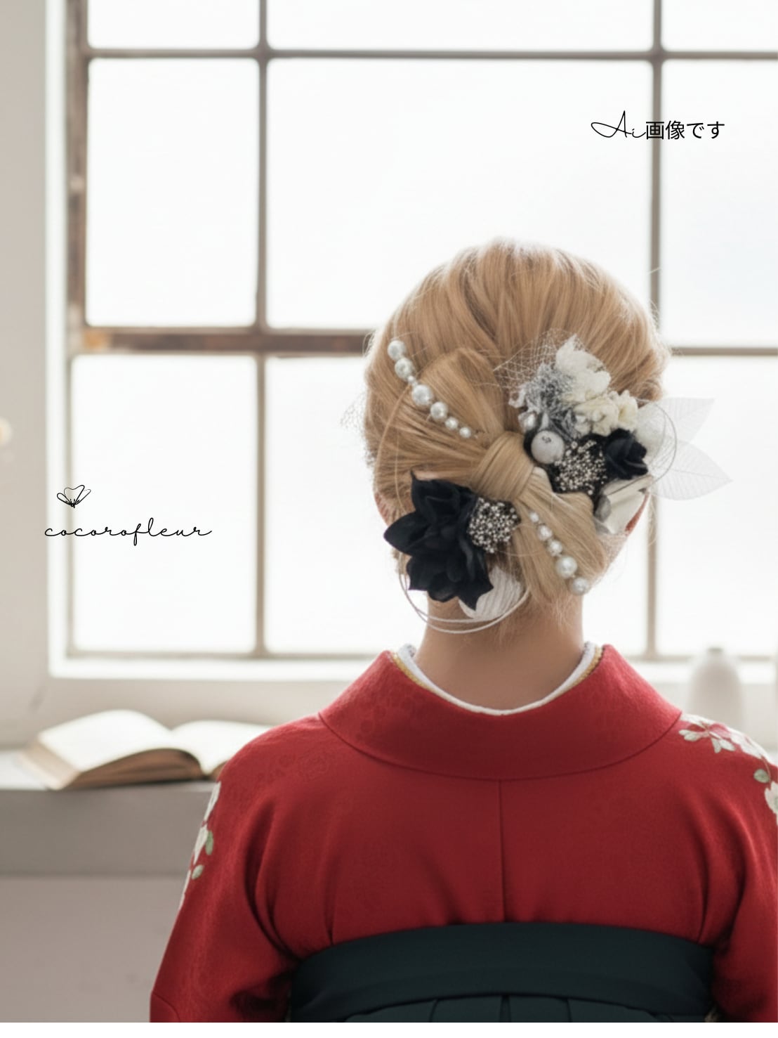【リボンヘアに似合うブラック髪飾り】卒業式 袴 成人式 振袖 結婚式 O-0006