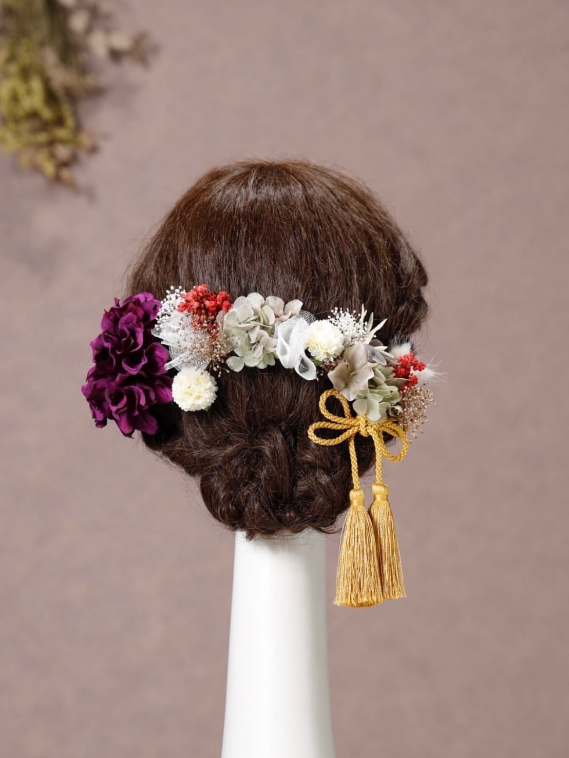 【古典柄に似合う髪飾り パープル】 振袖 成人式 袴 卒業式 ヘアパーツ 髪飾り ウェディング 白無垢 和装 k-0059