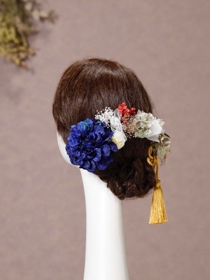 【ダリアダークブルー髪飾り】 ネイビー 卒業式 袴 振袖 成人式 k-0061