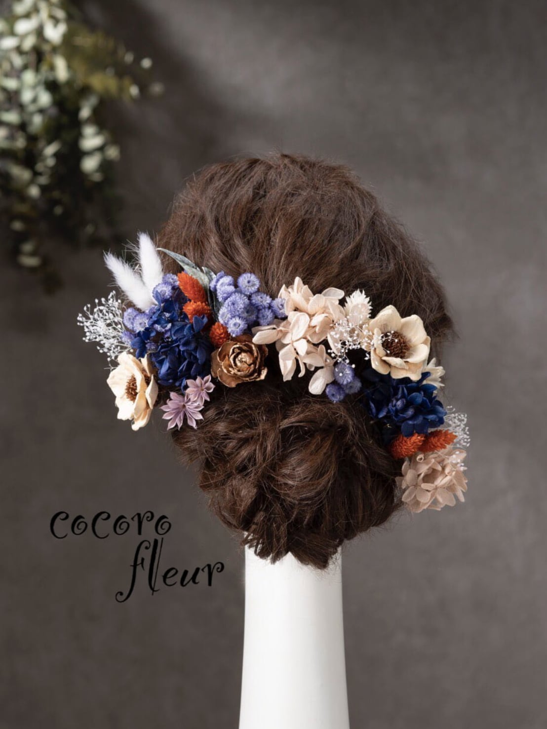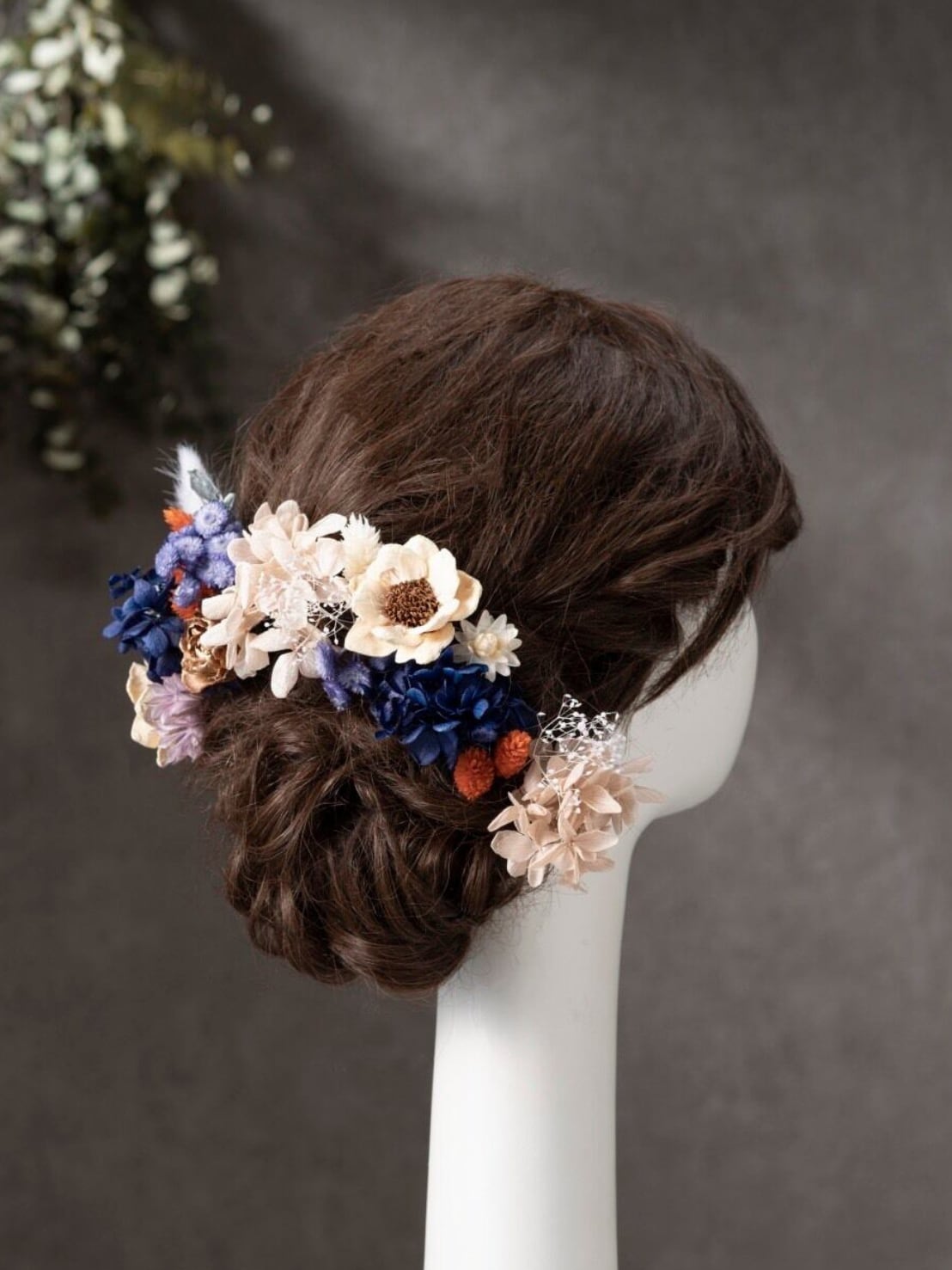 【パインフラワー髪飾り】 袴 振袖 成人式 ヘアドレス ヘアパーツ プリザーブドフラワー ドライフラワーフラワー k-0016