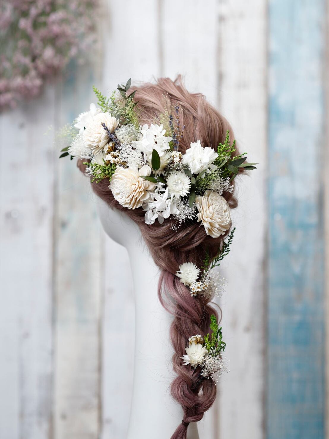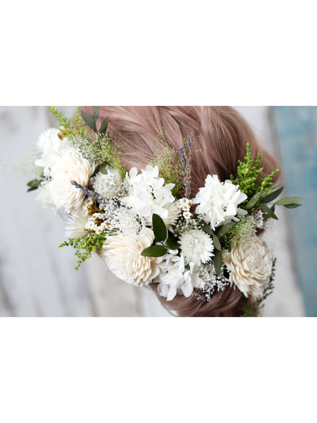 【シルバーデイジー髪飾り】ナチュラルシルバーデイジー髪飾り 白グリーン ウェディング 袴 振袖 成人式 ヘアドレス ヘアパーツ プリザーブドフラワー ドライフラワーフラワー k-0012
