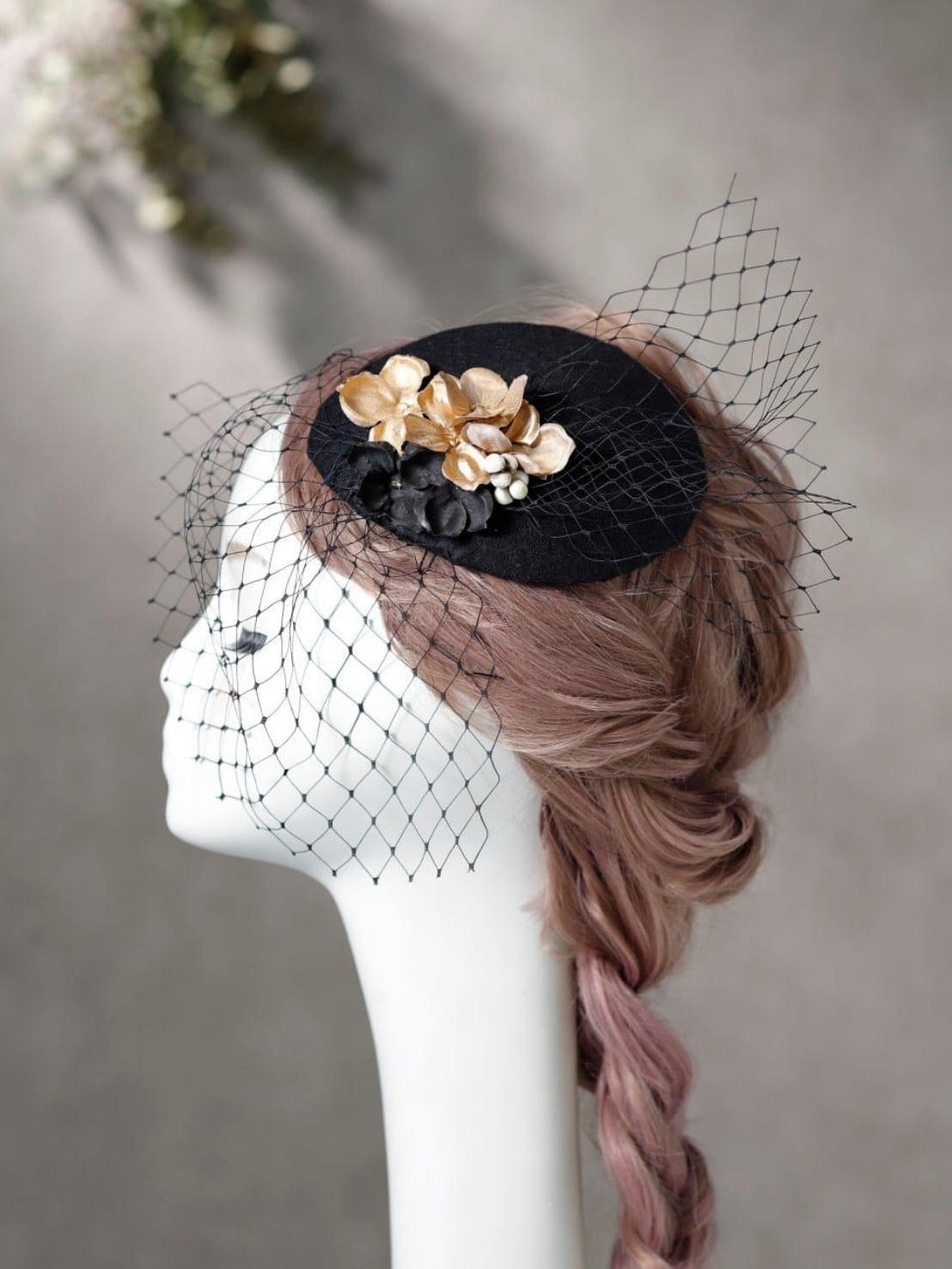 【人気のトーク帽 ブラック】 ウェディング 袴 振袖 成人式 ヘアドレス ヘアパーツ プリザーブドフラワー ドライフラワーフラワー k-0019