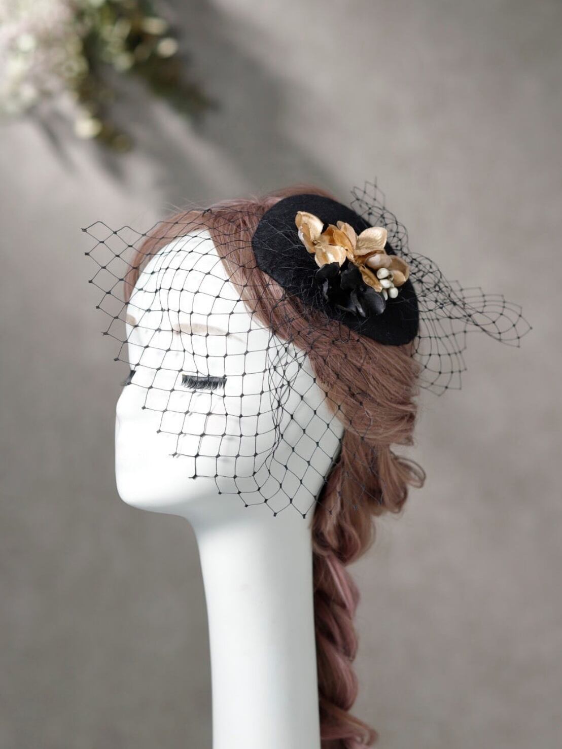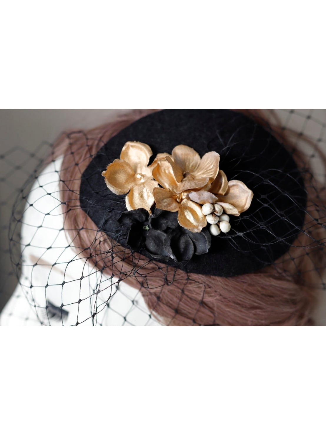 トーク帽はフエルト素材(裏はコーム クリップ)