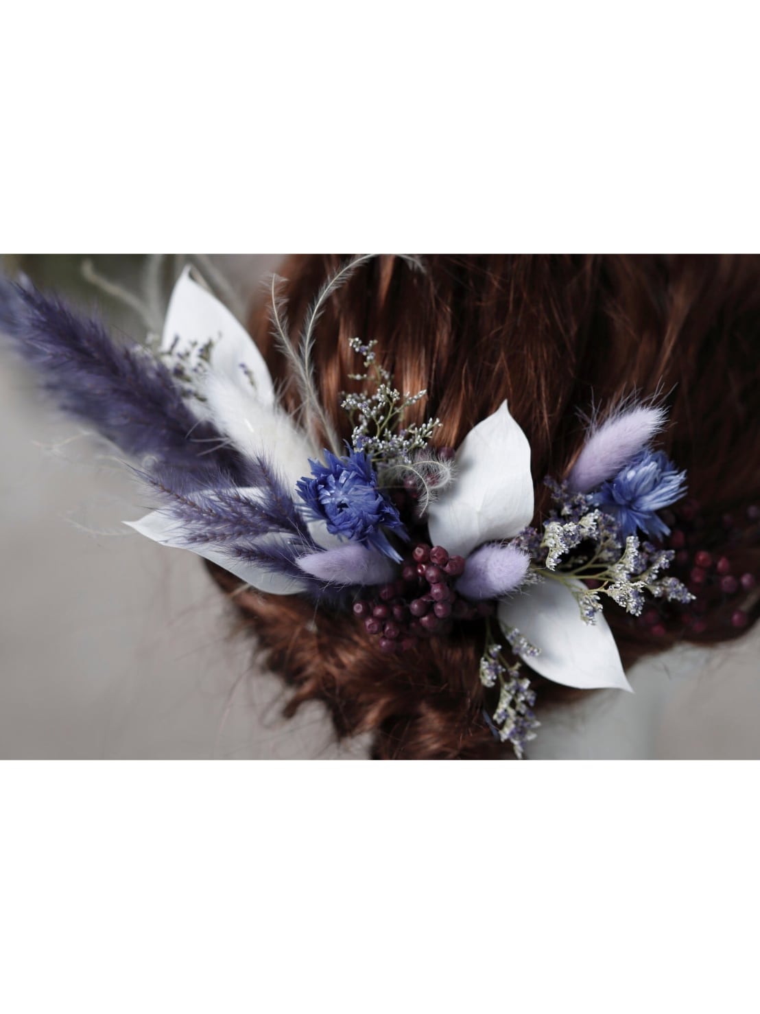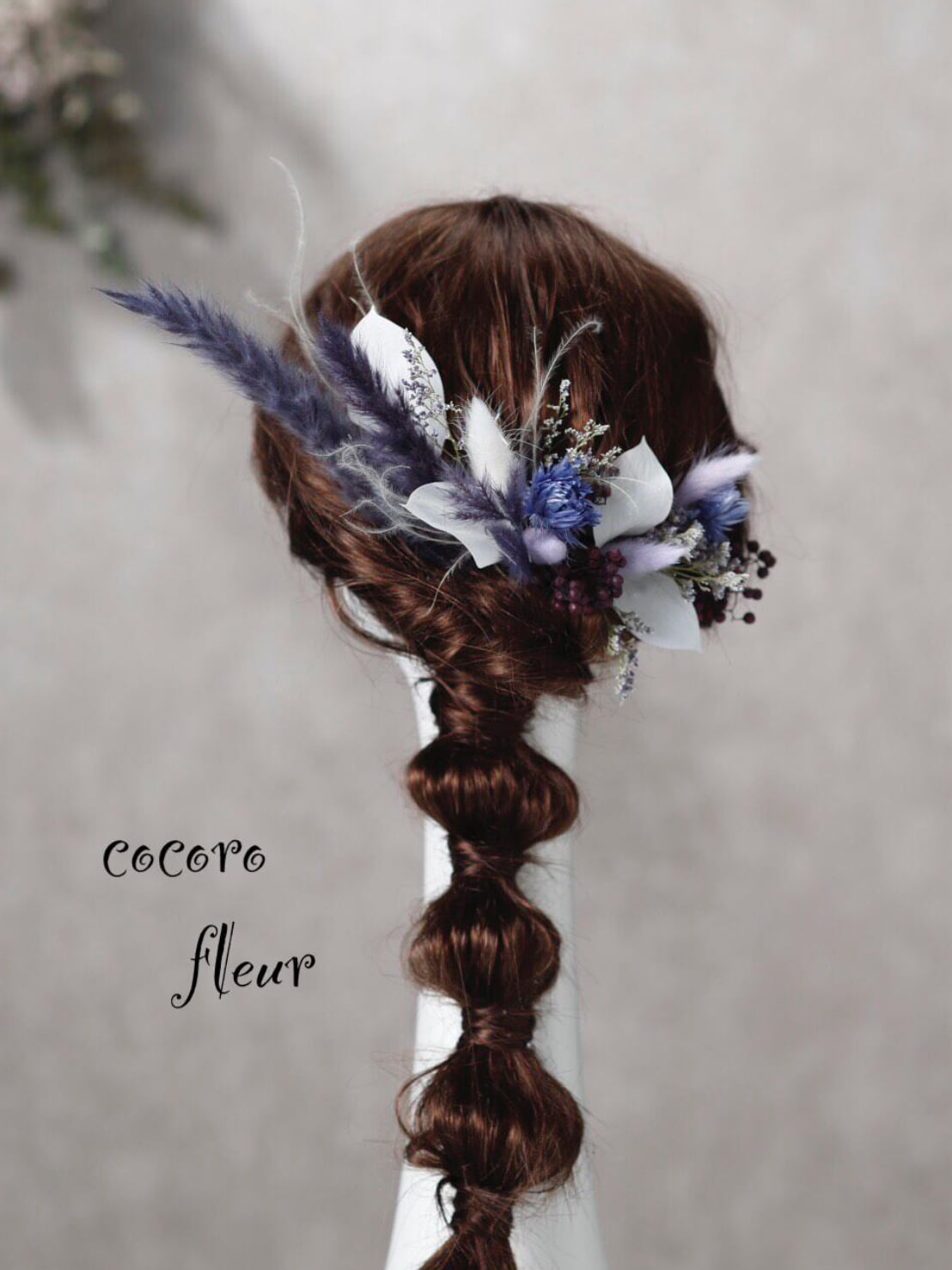 【テールリード髪飾り コバルトブルー】ウェディング 袴 振袖 成人式 ヘアドレス ヘアパーツ プリザーブドフラワー ドライフラワー k-0165