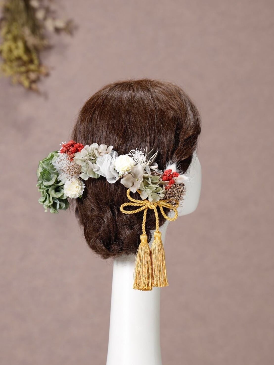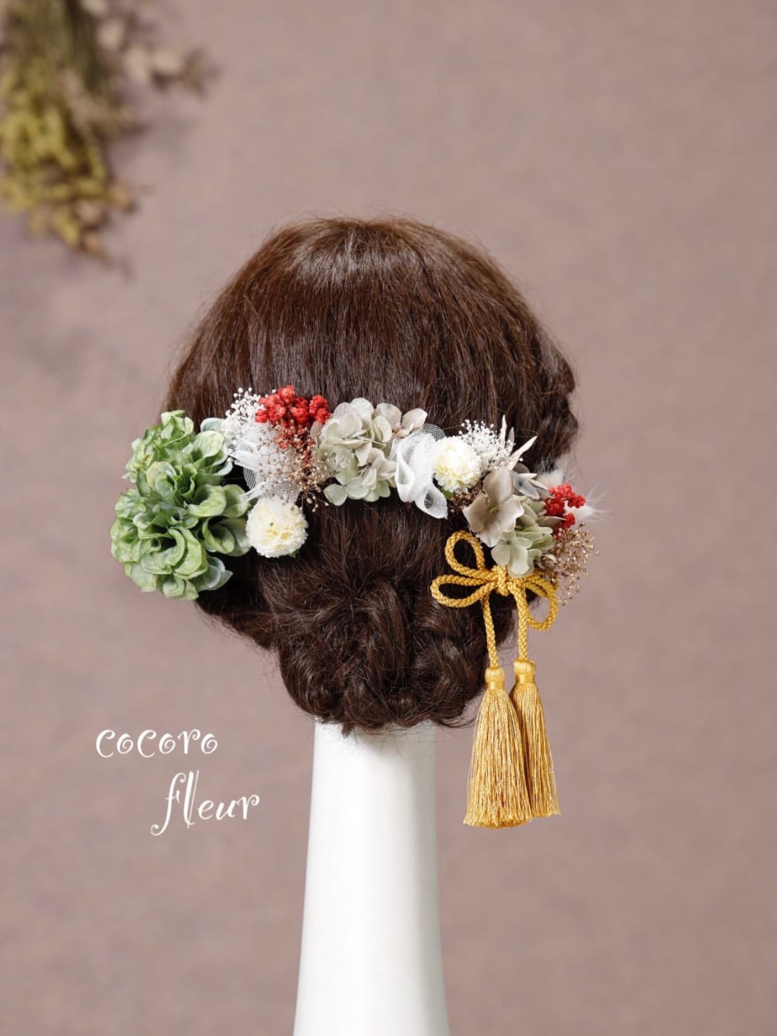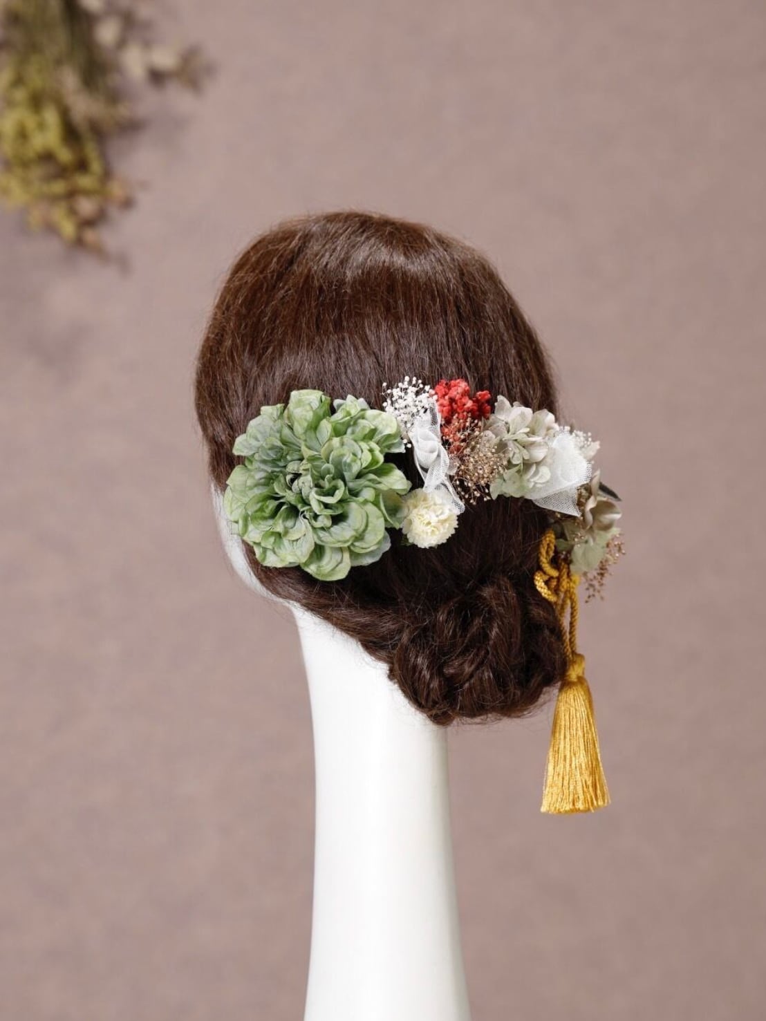 【ダリアアンティークグリーン髪飾り】 振袖 成人式 k-0057