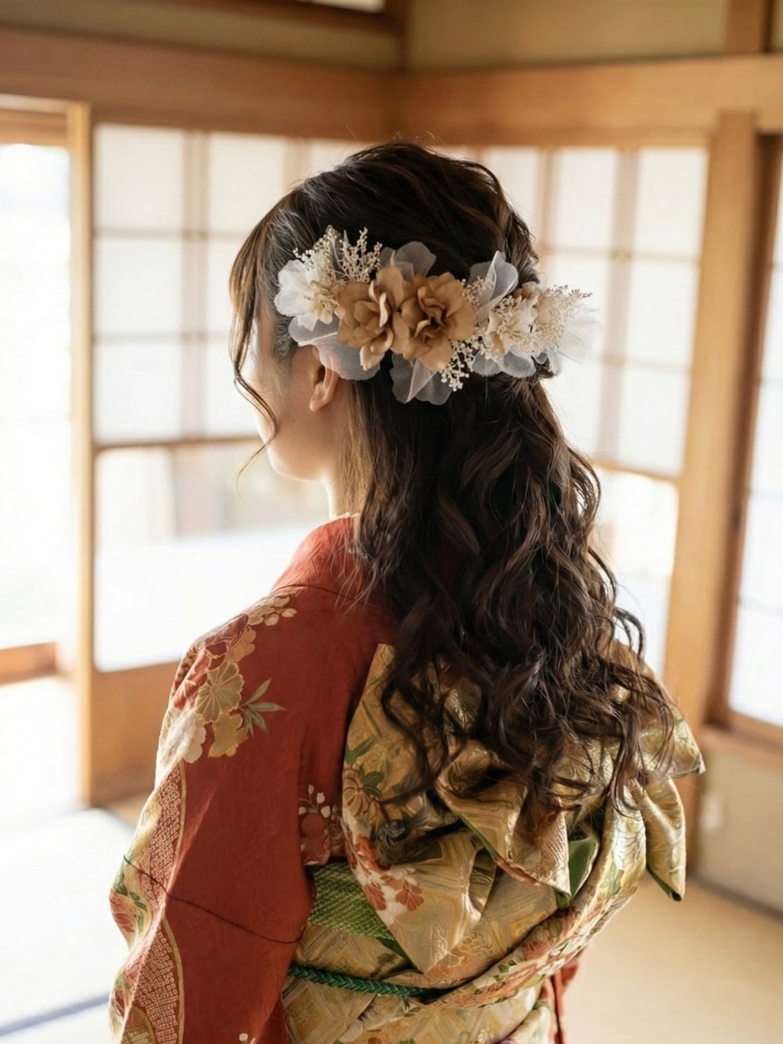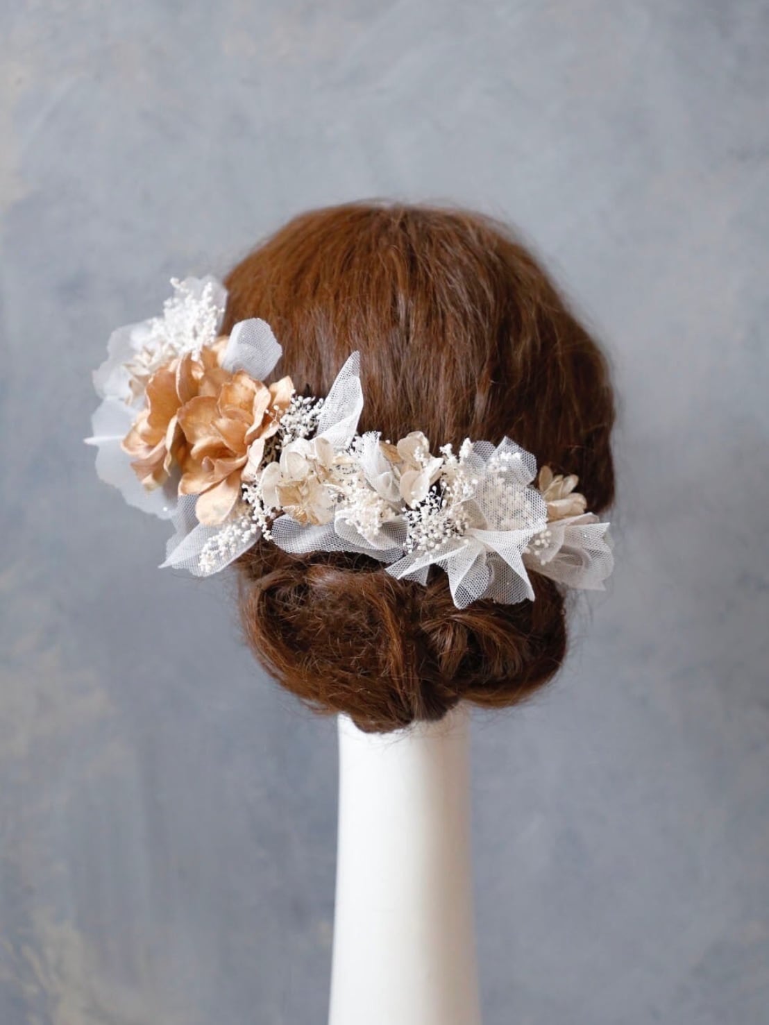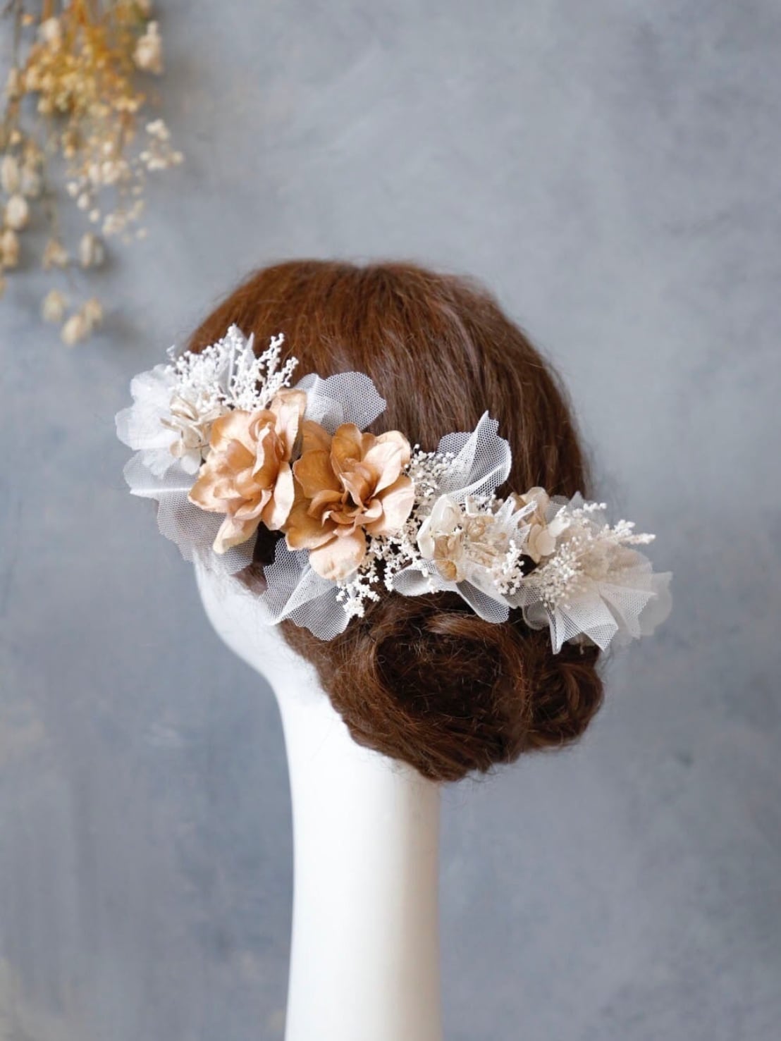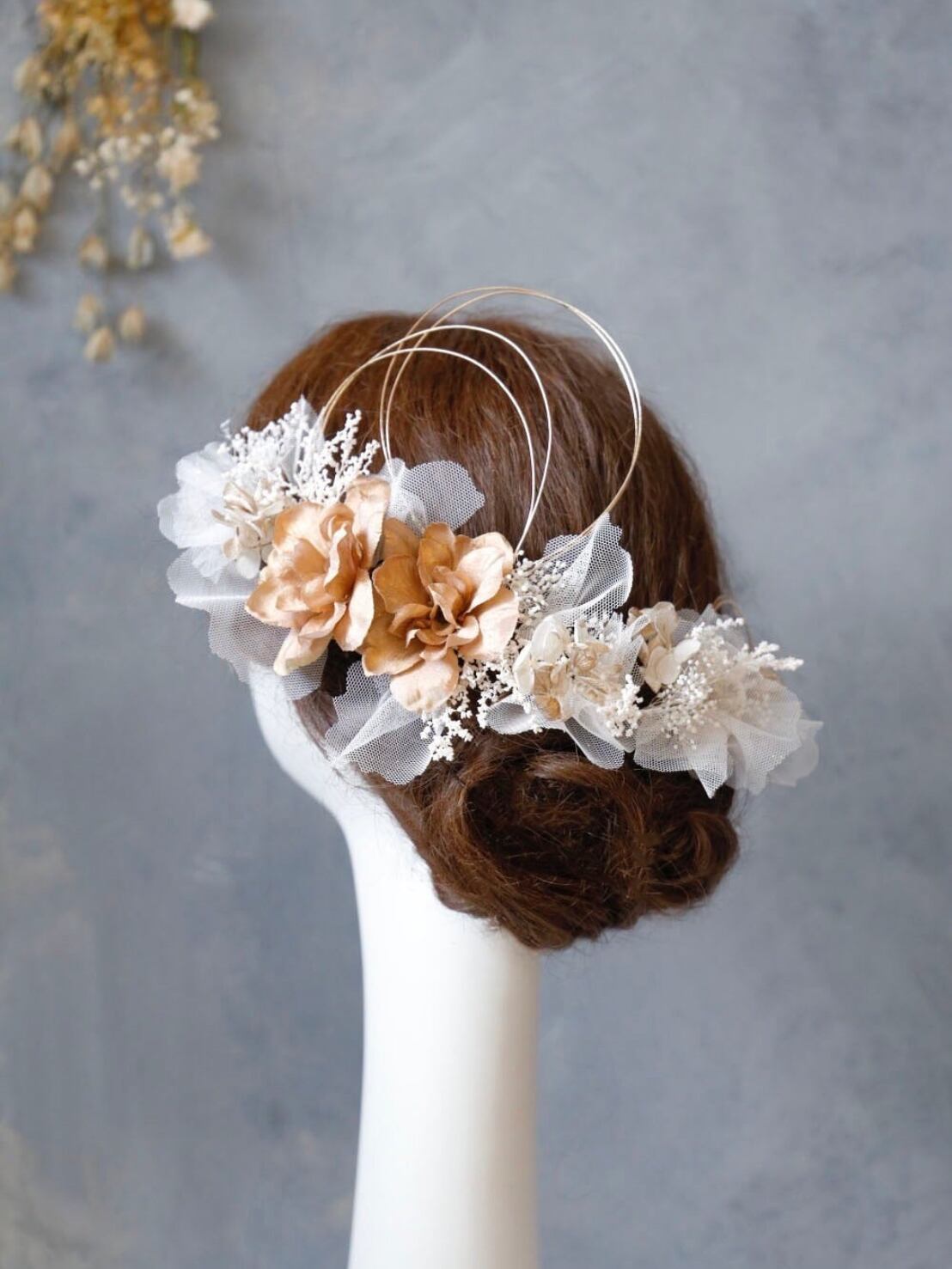 【橘tachibana髪飾り】 ゴールド ウェディング 袴 振袖 成人式 ヘアドレス ヘアパーツ プリザーブドフラワー ドライフラワー k-0017