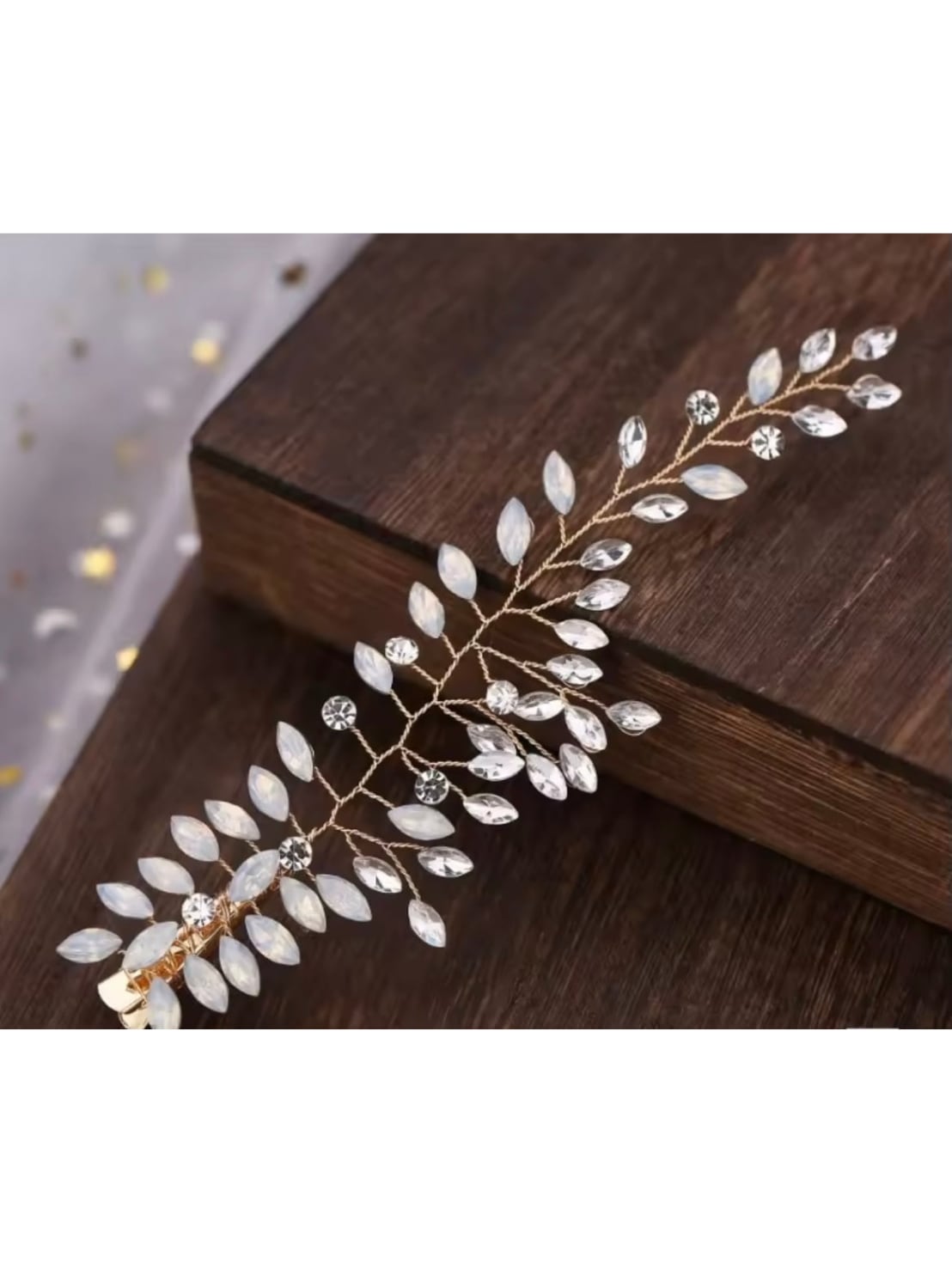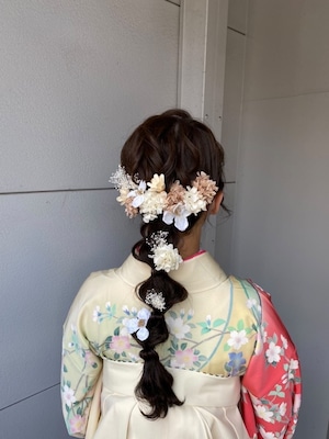 当店の髪飾りは、全体の雰囲気やバランスを大切にし、既製の小枝ビジューを使用しております。