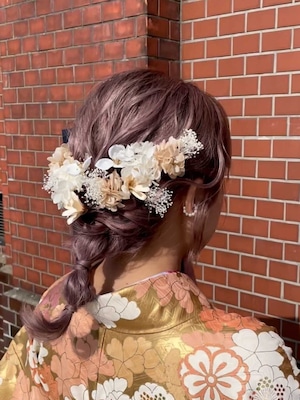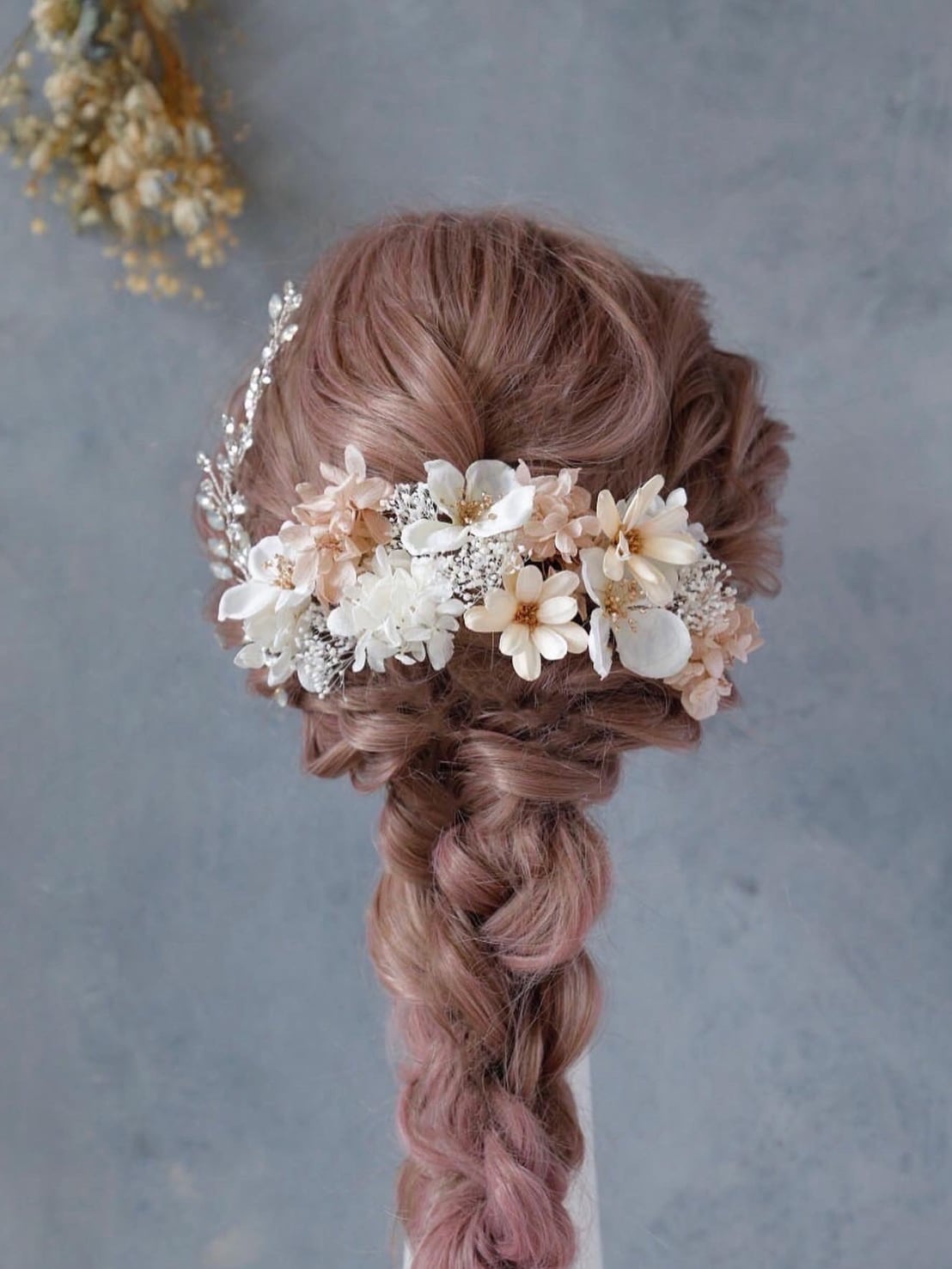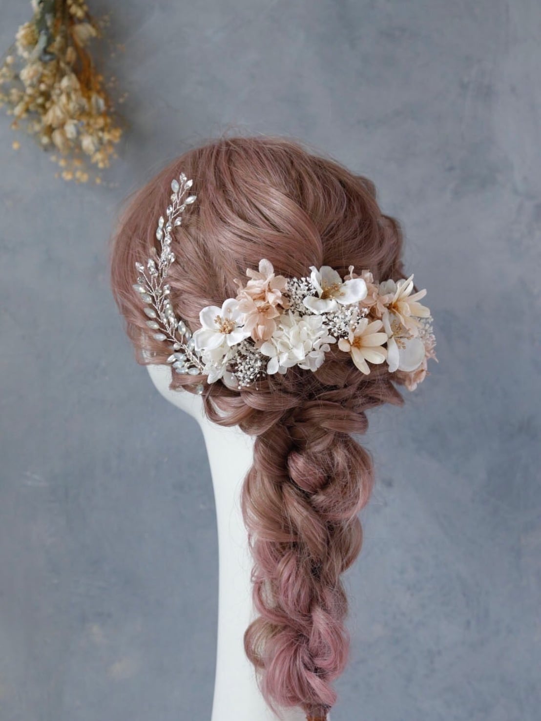 【小枝ビジュー髪飾り くすみピンク】ウェディング 袴 振袖 成人式 ヘアドレス ヘアパーツ プリザーブドフラワー ドライフラワーフラワー k-0097