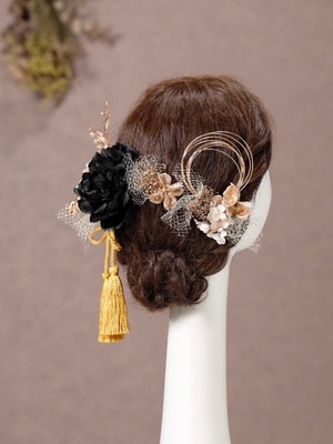 【シャクヤクブラック髪飾り】 金箔プレゼント 袴 卒業 振袖 成人式 卒業式 袴 ウェディング ヘッドドレス ヘアパーツ k-0064