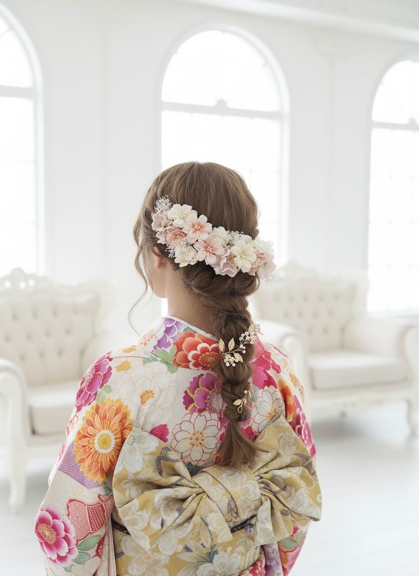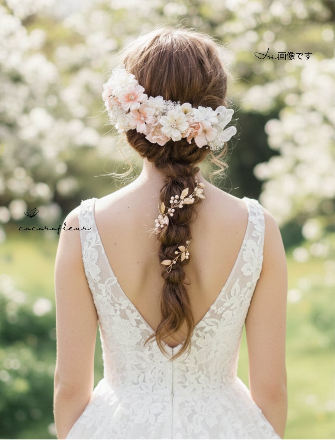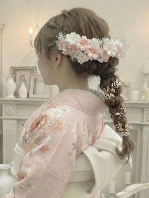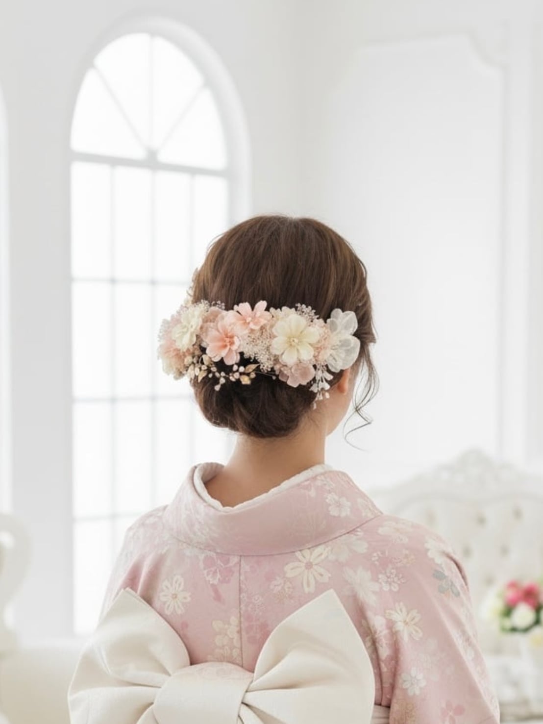 Zinnia(ジニア)髪飾りは、上品なフラワーと小枝ビジューが一つになった、とても華やかで美しいヘアアクセサリーです。卒業式、袴、振袖、成人式、白無垢、色打掛、和装のシーンでのヘアパーツやヘッドドレスとして最適です。