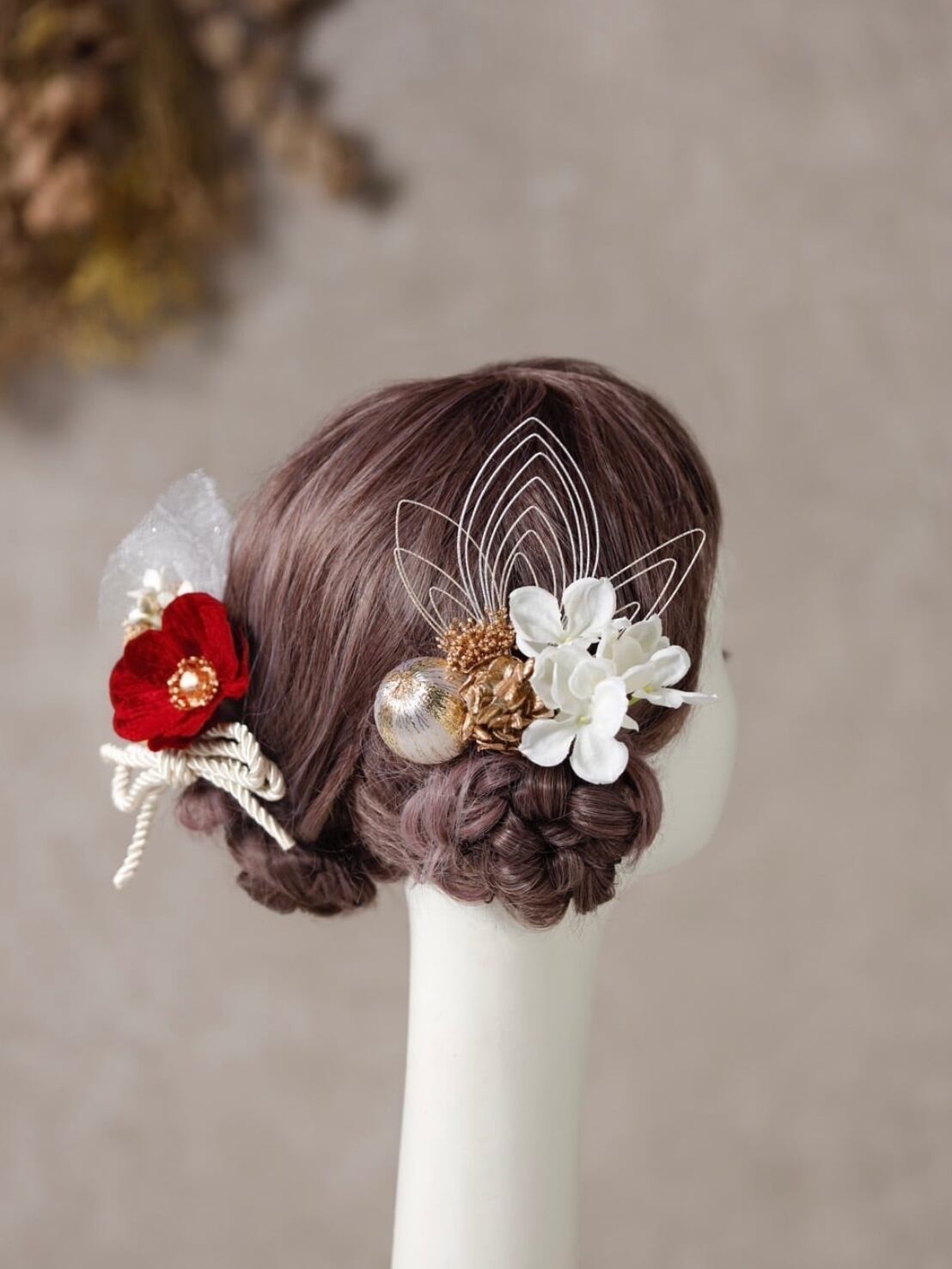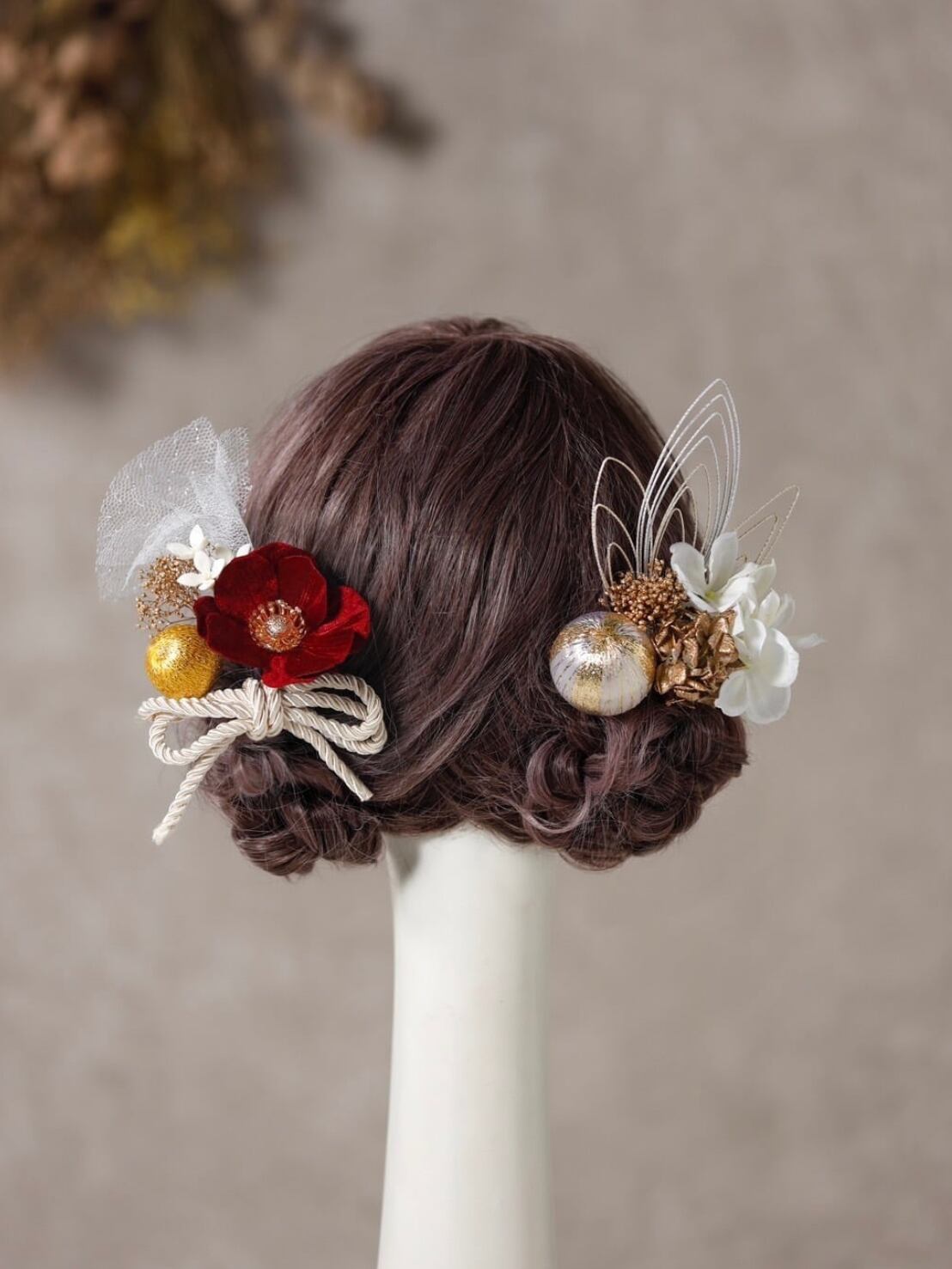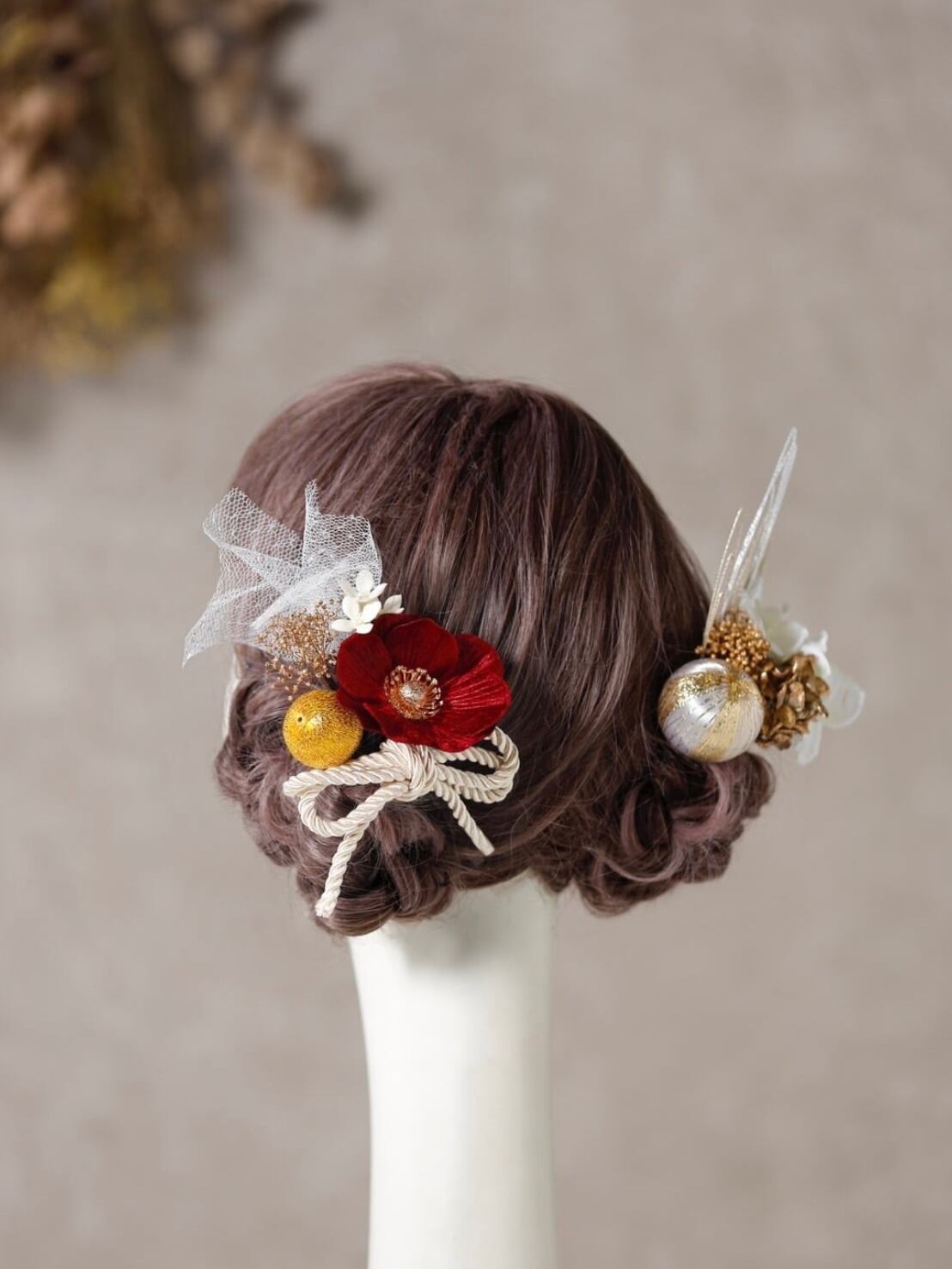 【牡丹一華水引髪飾り レッド】成人式 卒業式 結婚式 k-0088