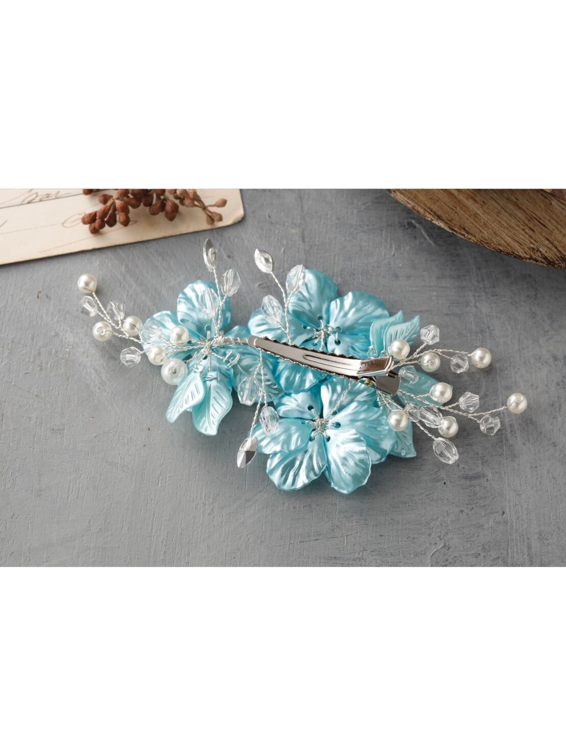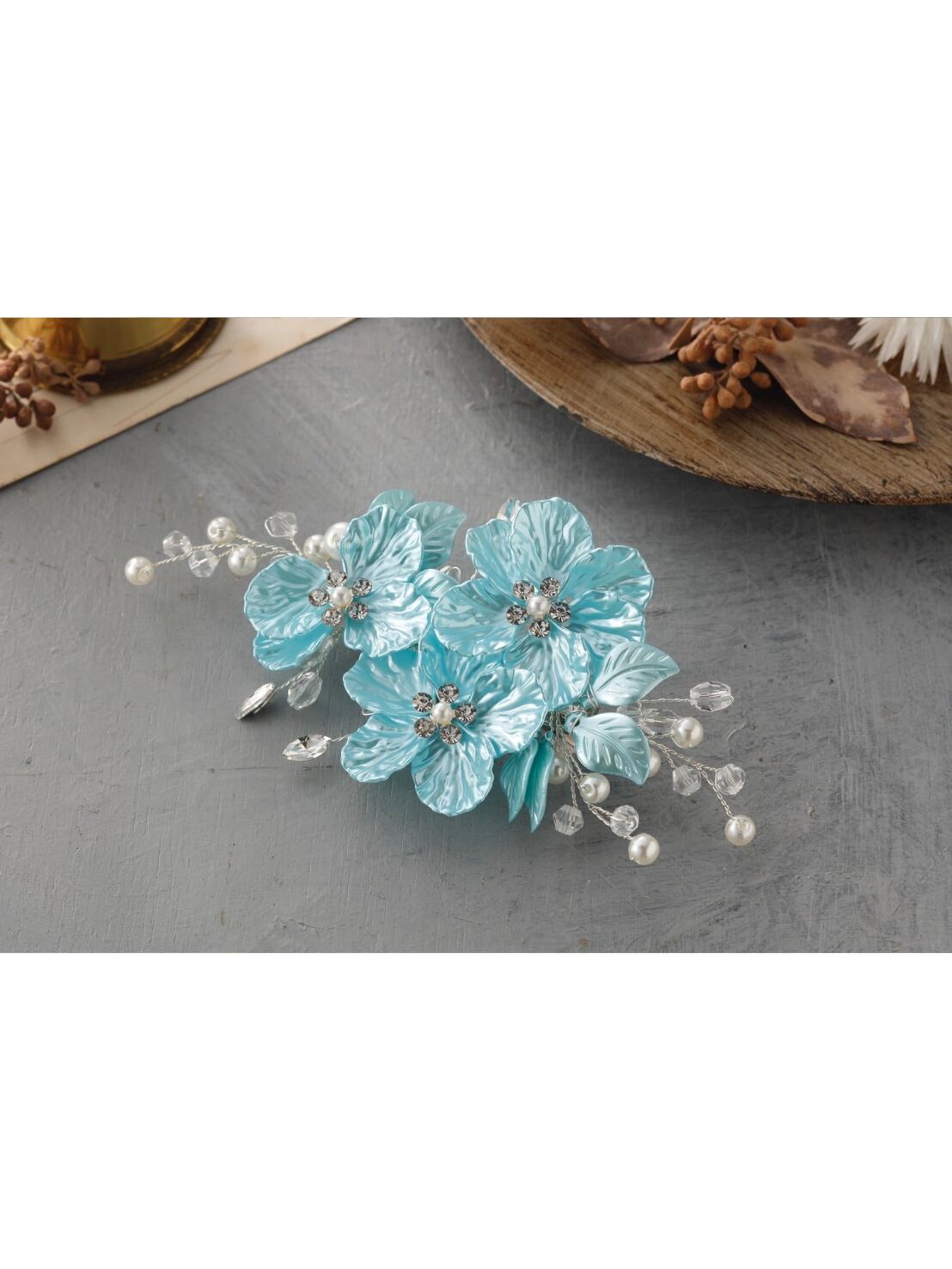 華やかなヘアスタイルを演出する、ブルーのフラワー小枝ビジュ。振袖や袴をはじめ、成人式の着物にぴったりのヘアドレスです。小さな花びらが可愛らしい、上品なデザインが特徴。