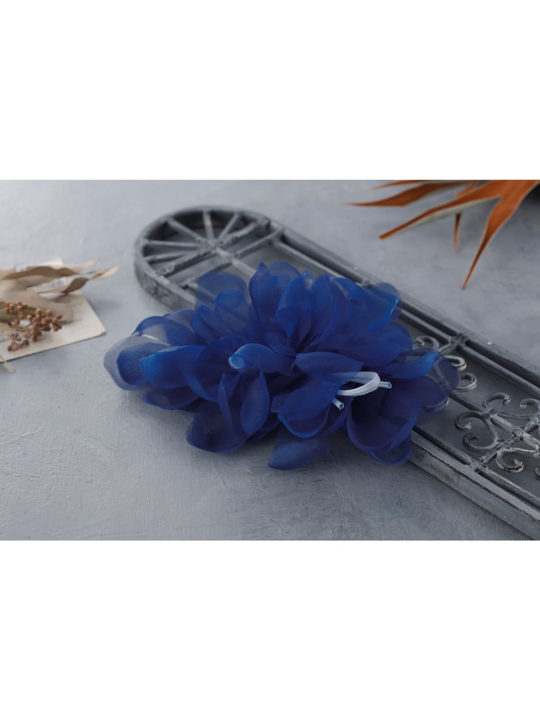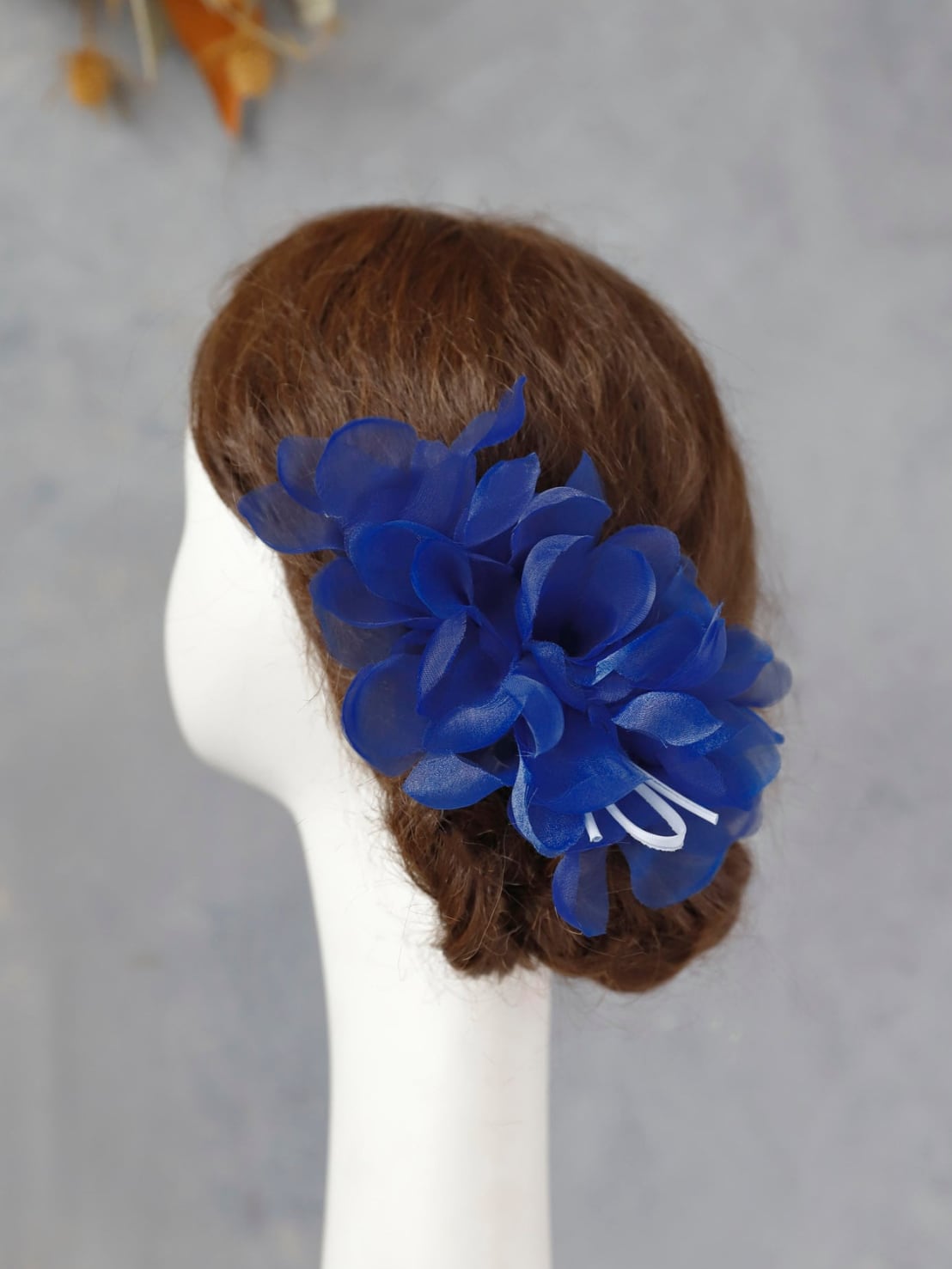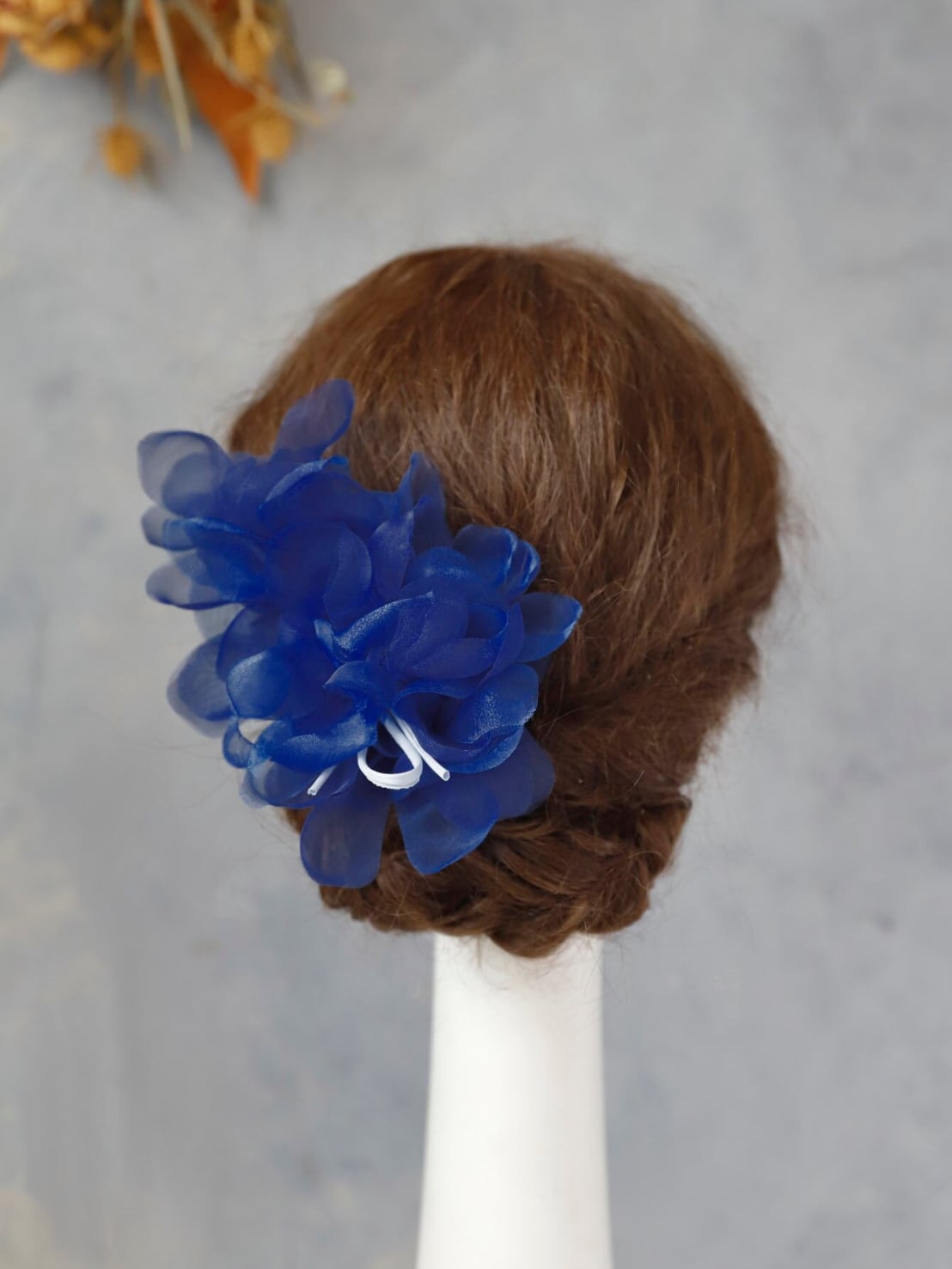 【サテンフラワーヘッドクリップ ブルー】 チュール 袴 卒業 振袖 成人式 卒業式 袴 ウェディング ヘッドドレス ヘアパーツ k-0039