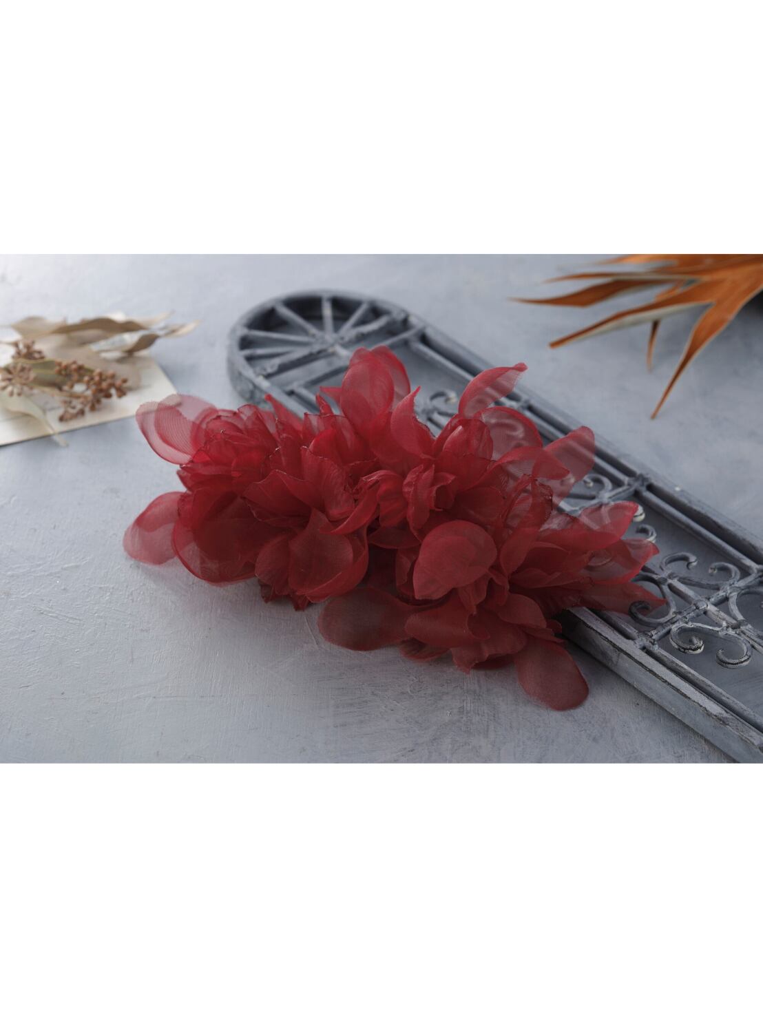 【サテンフラワーヘッドクリップ ワインレッド】 チュール 袴 卒業 振袖 成人式 卒業式 袴 ウェディング ヘッドドレス ヘア k-0041