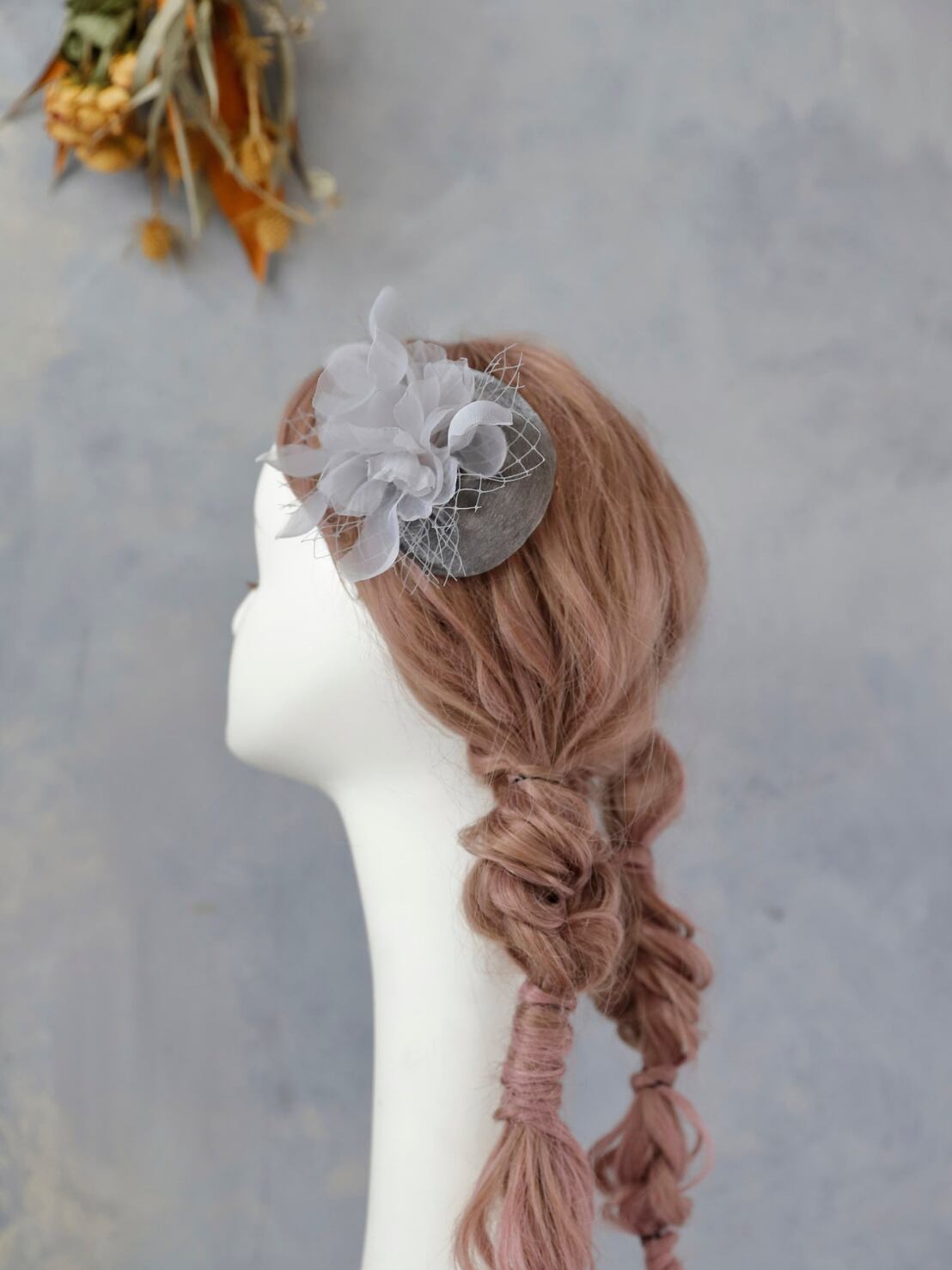 【トーク帽 ヘッドクリップ グレー】 チュール 袴 卒業 振袖 成人式 卒業式 袴 ウェディング ヘッドドレス ヘアパーツ k-0047