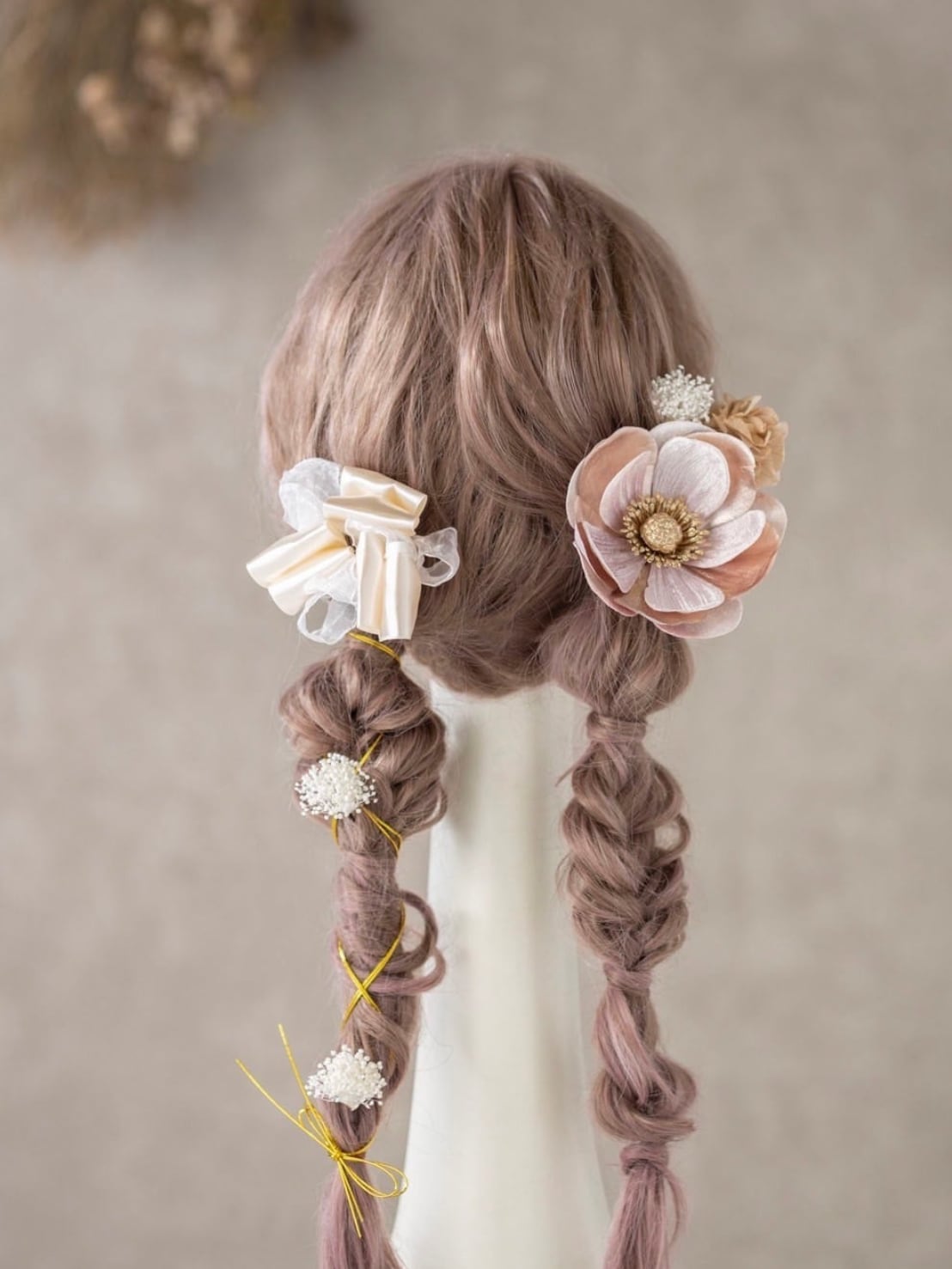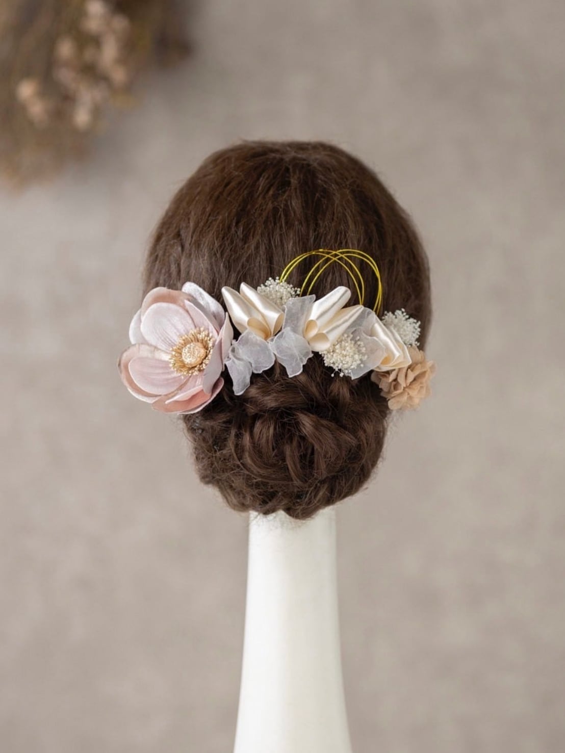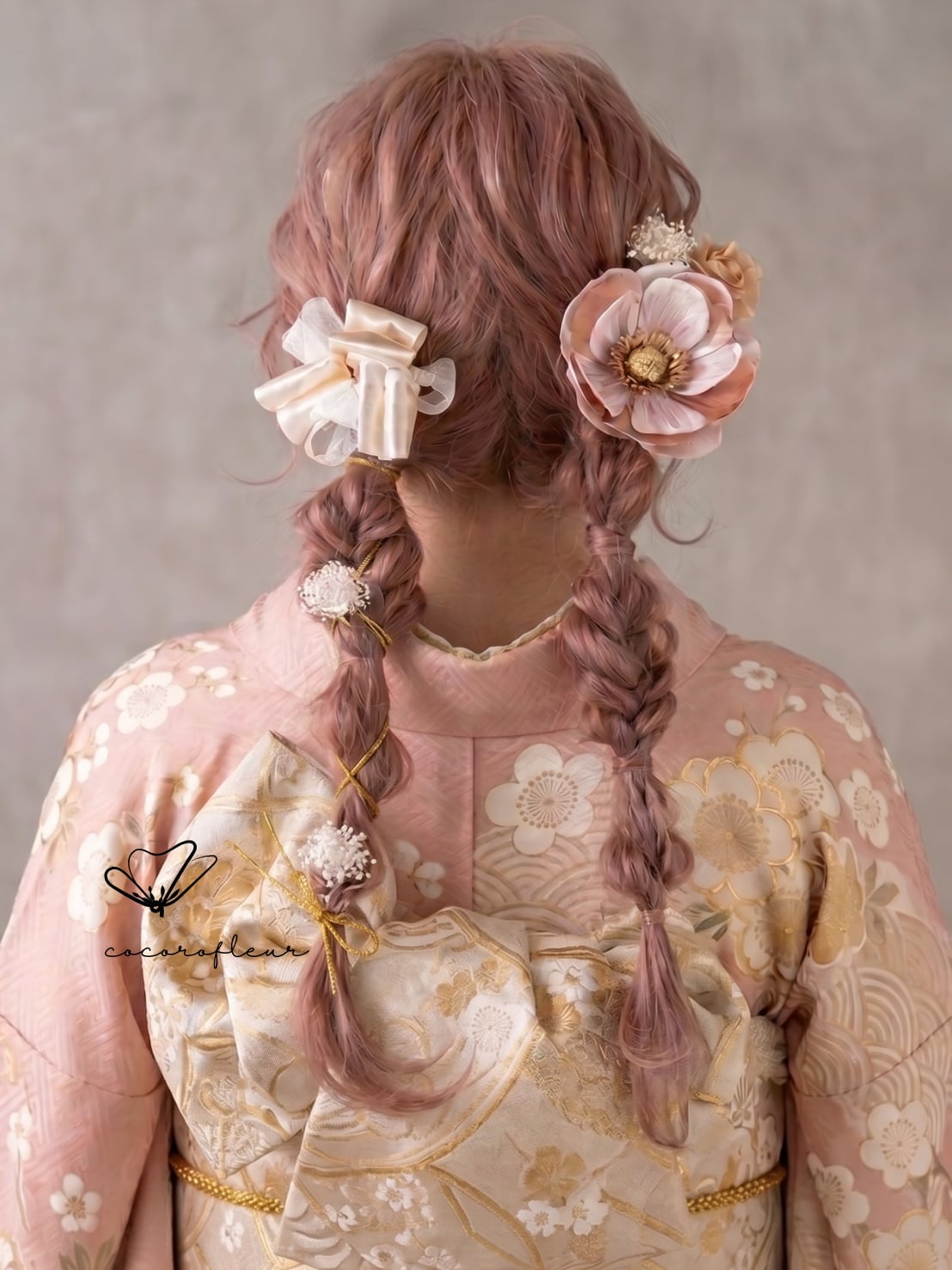 【紅花翁草(アネモネ)リボン髪飾り くすみピンク】成人式 卒業式 結婚式 k-0072