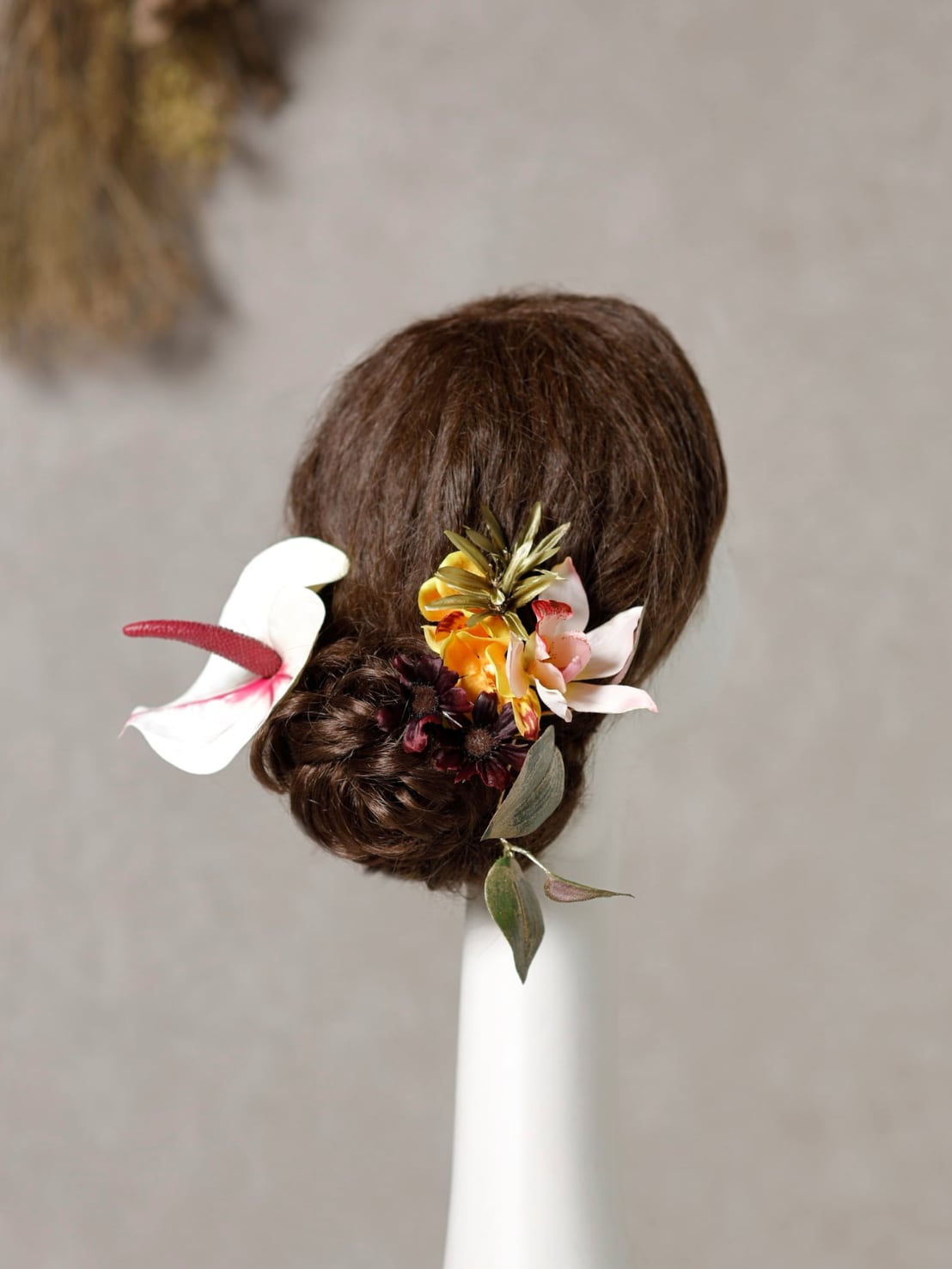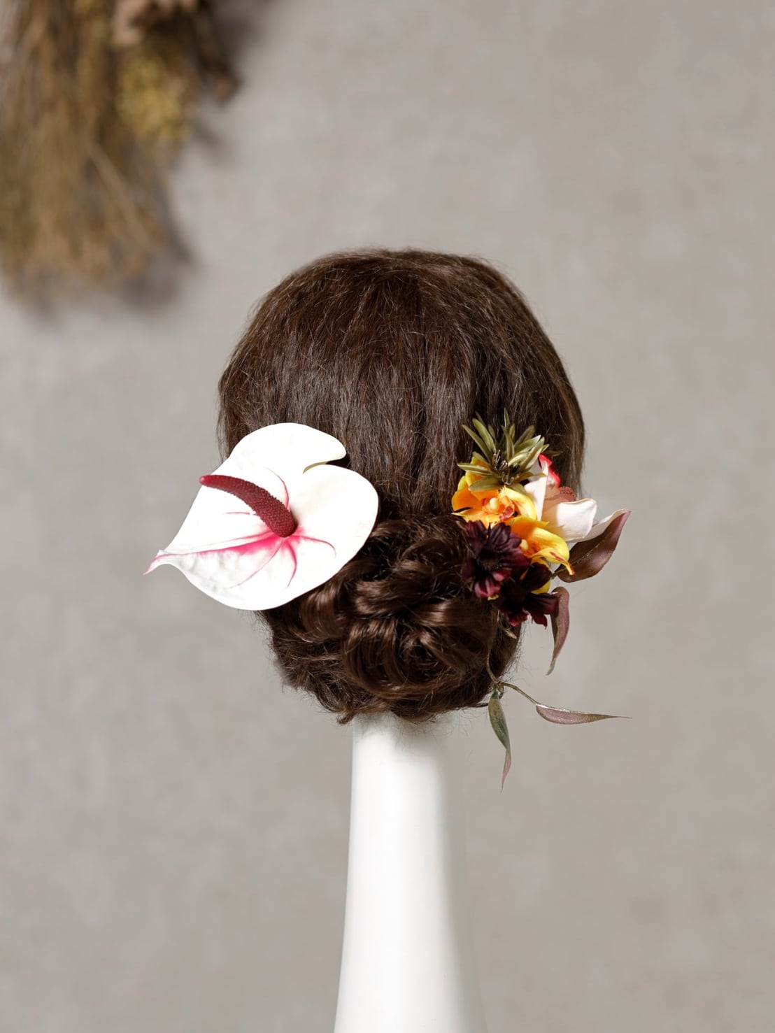 【アンスリウム髪飾り クリームレッド】成人式 卒業式 結婚式 k-0085