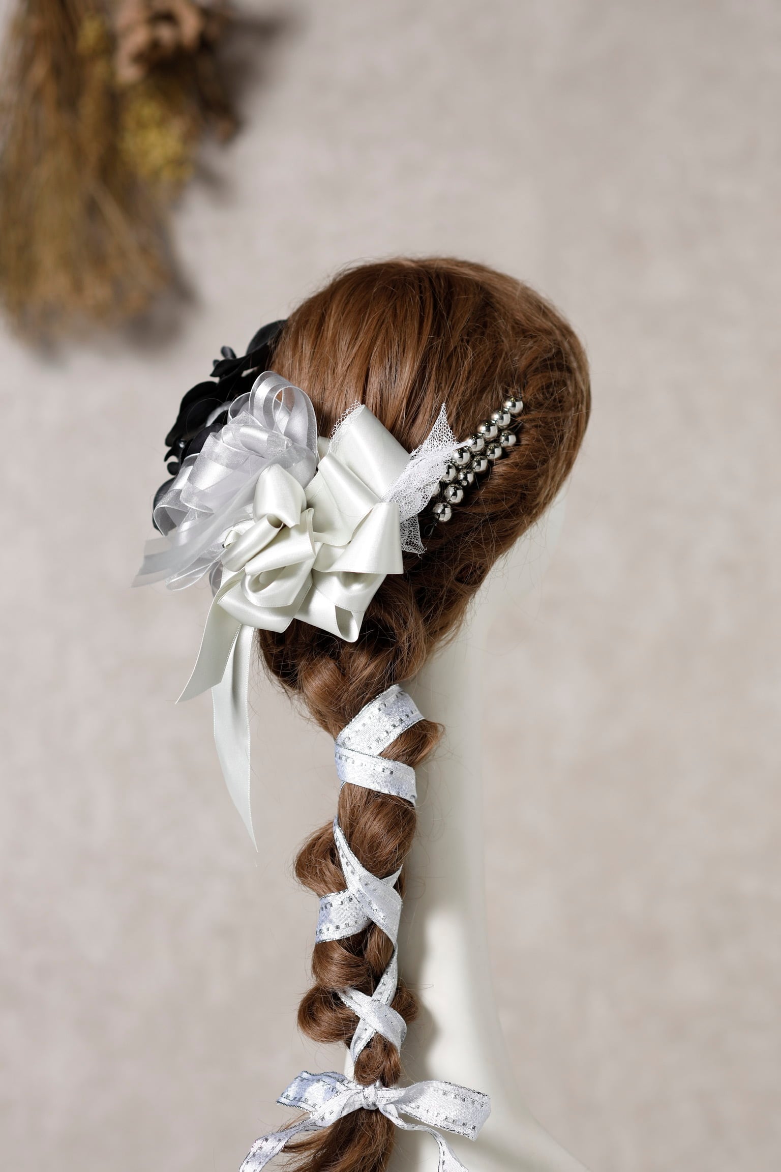 ブラック胡蝶蘭リボン髪飾り 成人式 卒業式 結婚式
