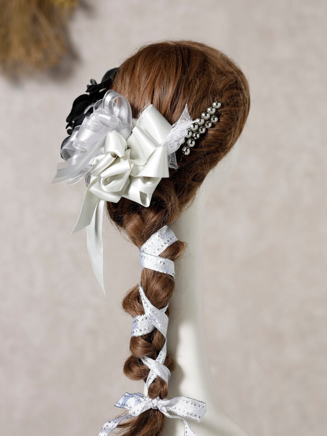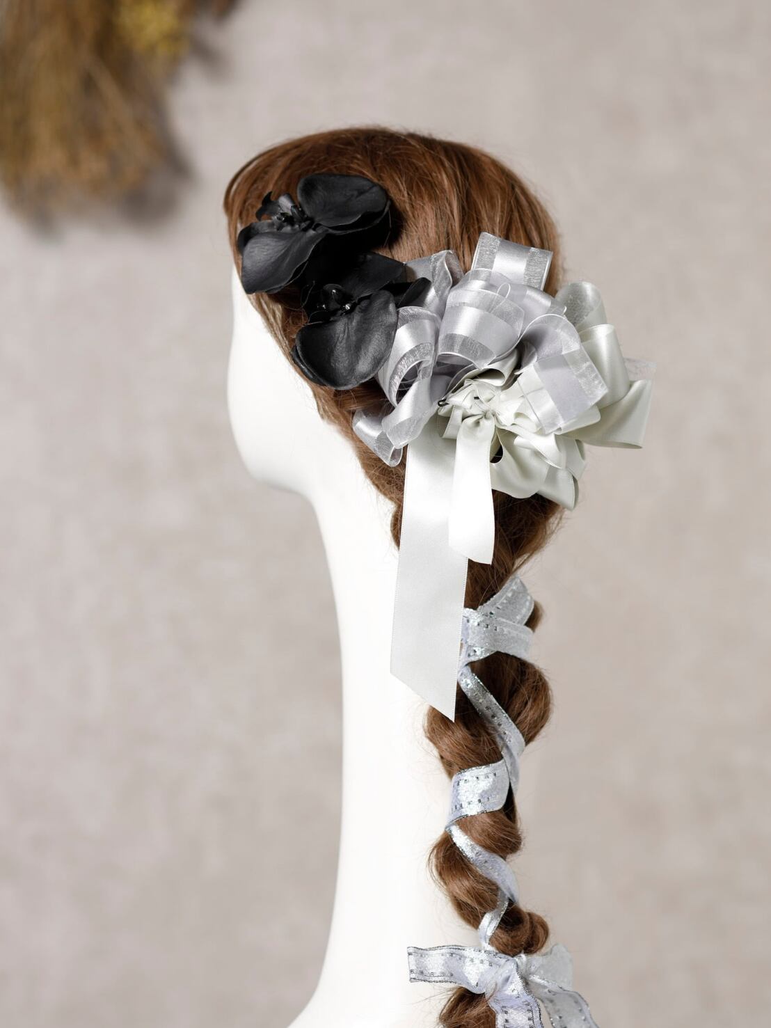 【ブラック胡蝶蘭リボン髪飾り】 成人式 卒業式 結婚式 k-0069