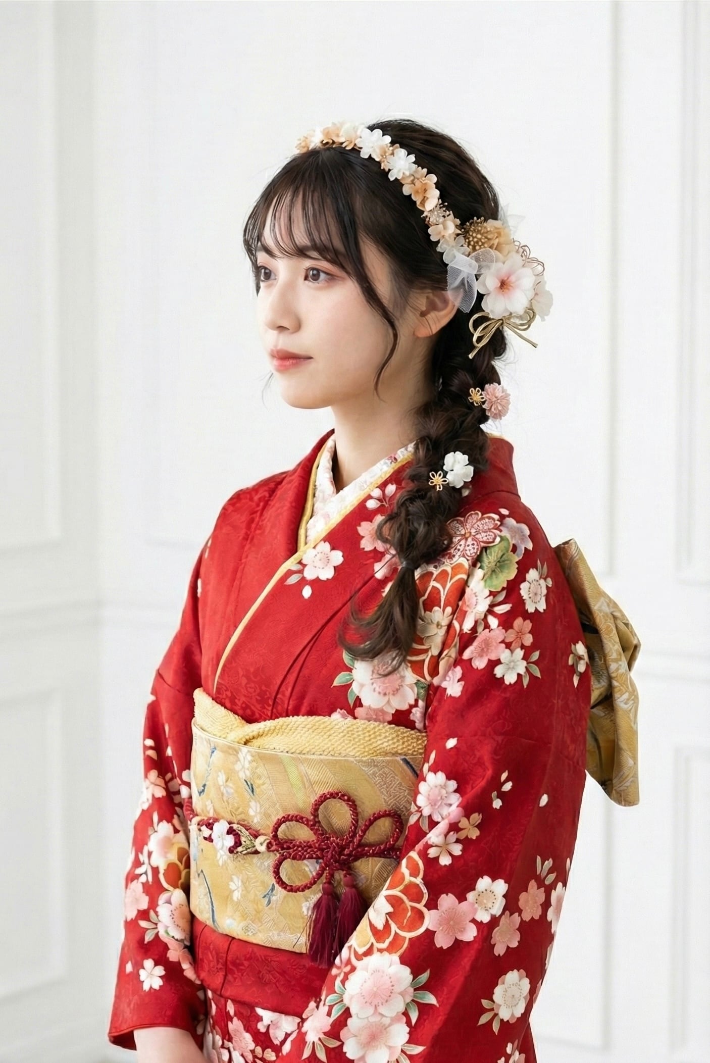 フラワーカチューシャ髪飾り くすみピンク 成人式 卒業式 結婚式