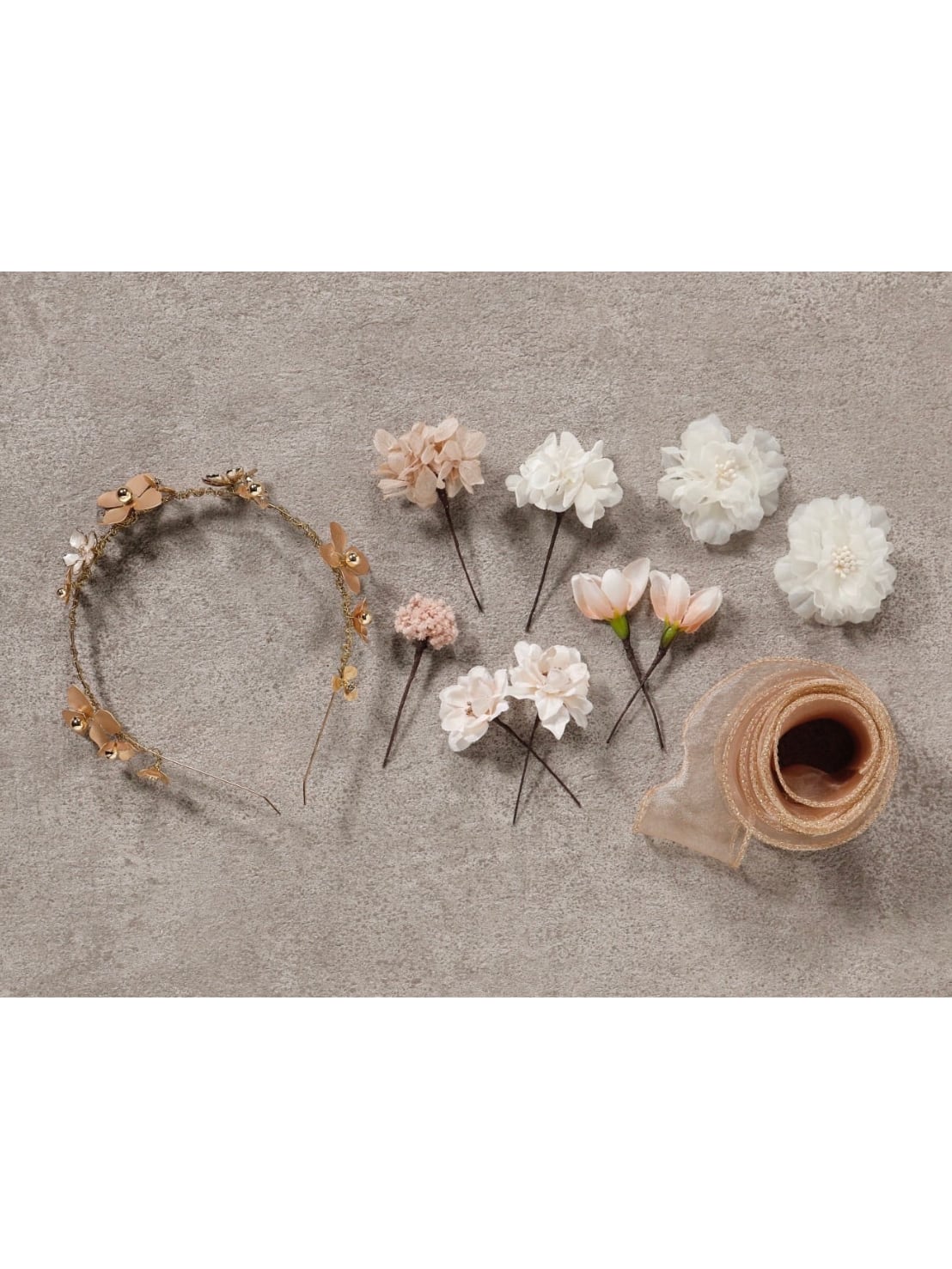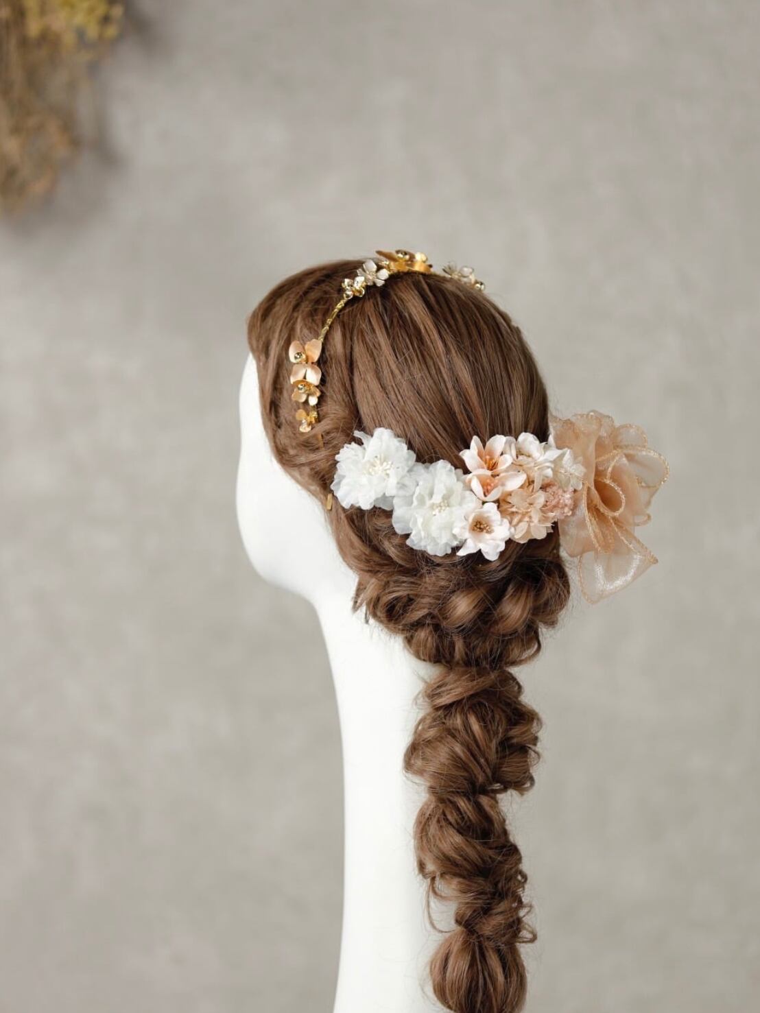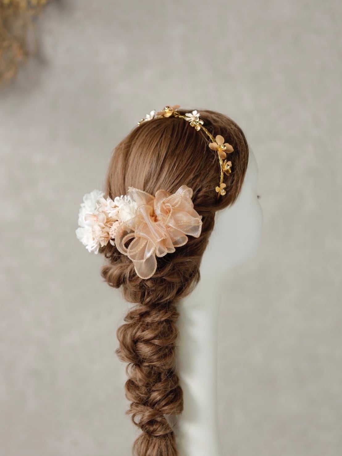 【真鍮フラワーカチューシャ髪飾り くすみピンク】成人式 卒業式 結婚式 k-0073