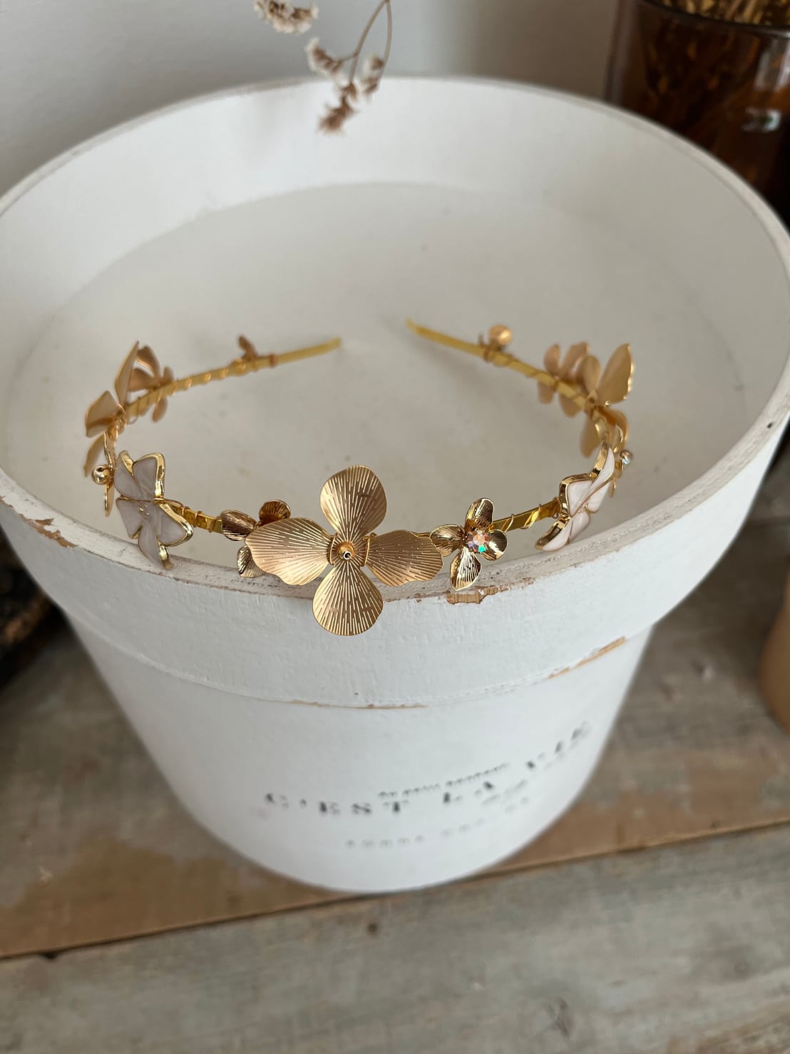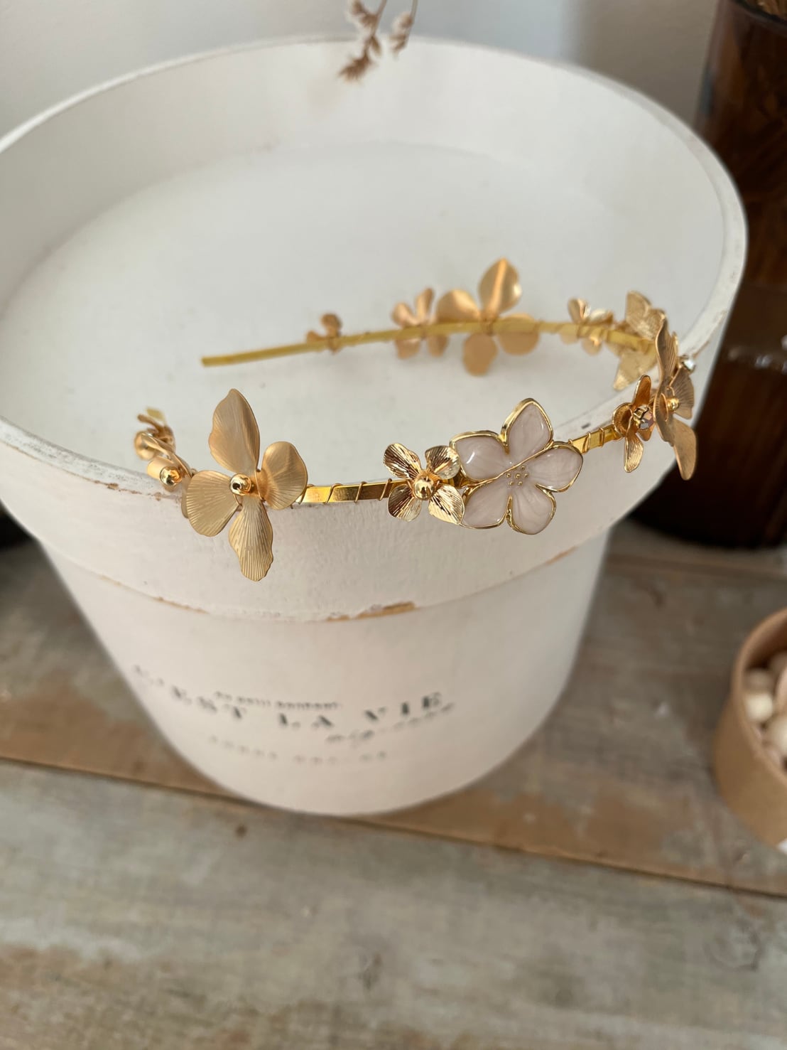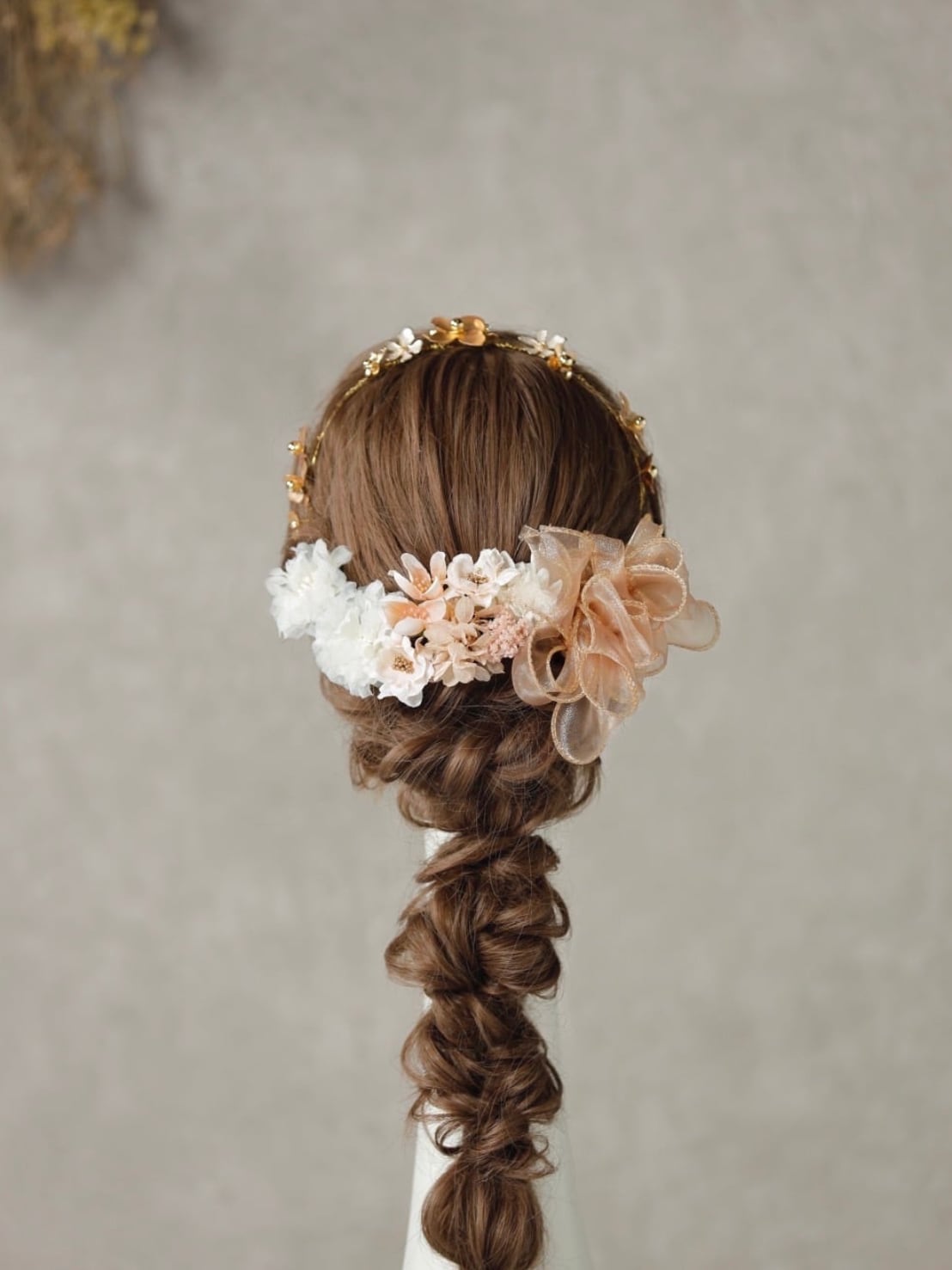 【真鍮フラワーカチューシャ髪飾り くすみピンク】成人式 卒業式 結婚式 k-0073