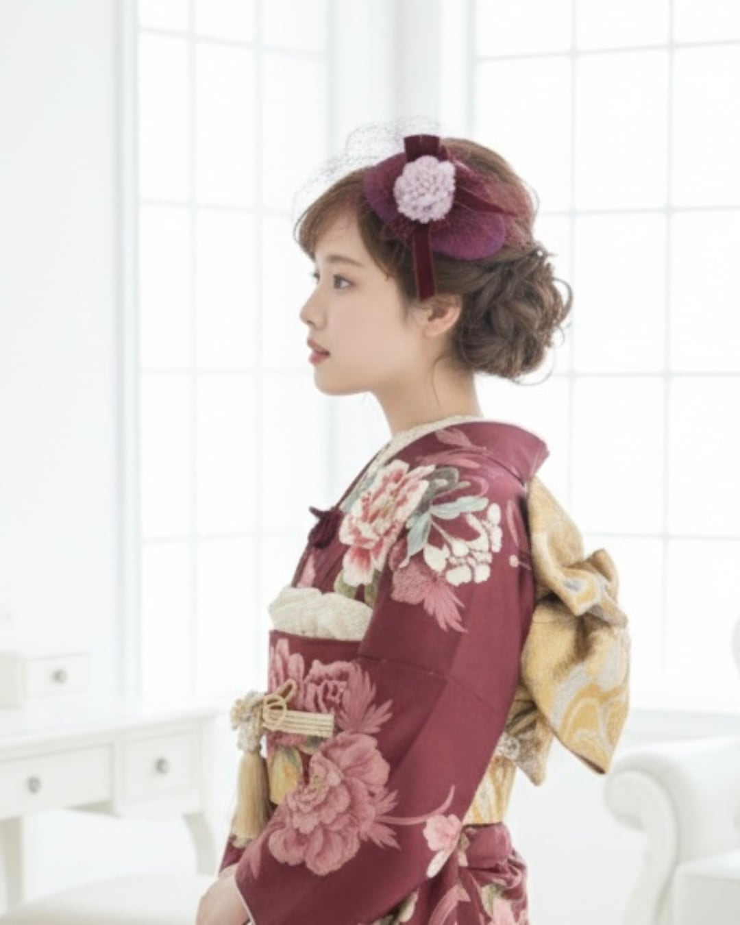 シフォンフラワートーク帽 パープル 成人式 卒業式 結婚式
