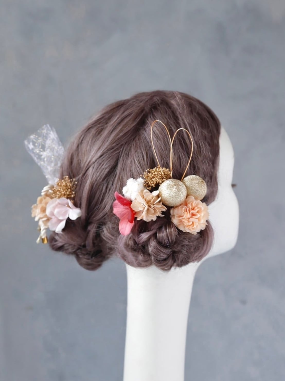【紫陽花髪飾り(パールなし) ピンク】 成人式 卒業式 結婚式 k-0096