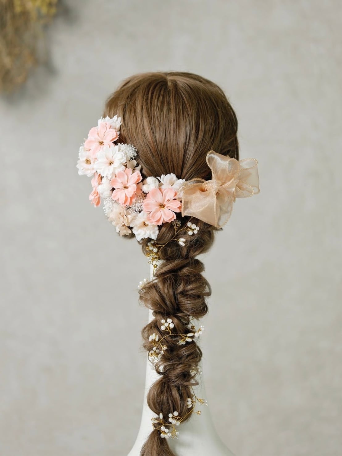 【Zinnia(ジニア)リボン髪飾り】小枝ビジュー 卒業式 袴 振袖 成人式 白無垢 色打掛 和装 ヘアパーツ ヘッドドレス 白無垢 k-0115
