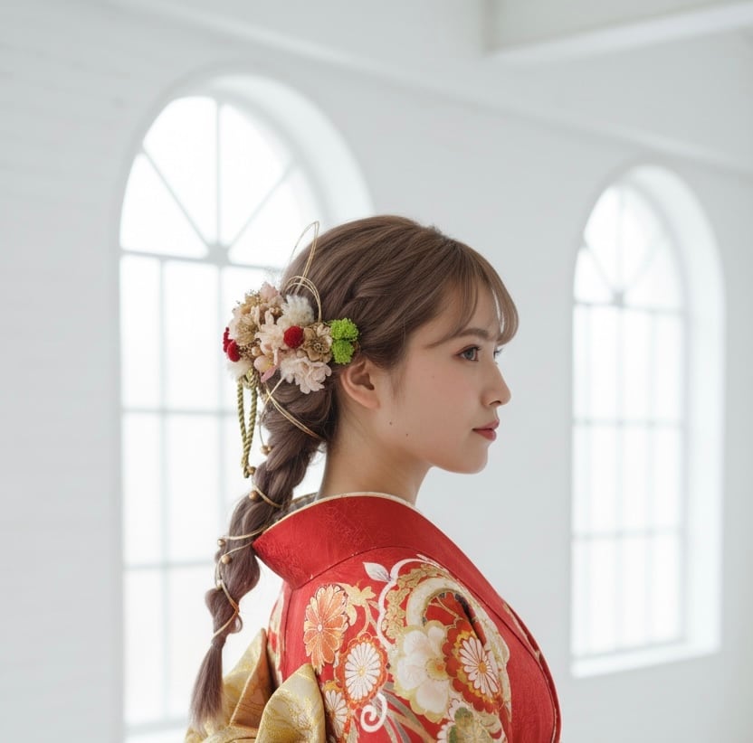 クリサンセマム(Chrysanthemum)髪飾り レッド 成人式 振袖 袴 卒業式 袴 ウェディング ヘッドドレス ヘアパーツ