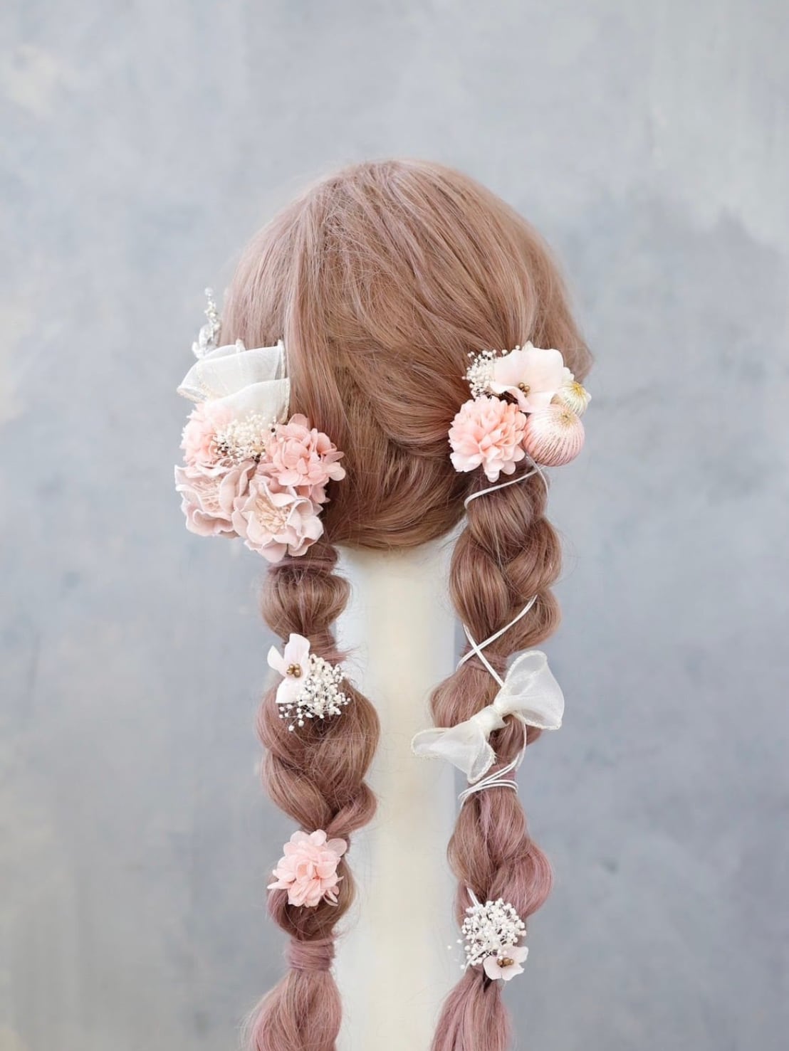 【ブロッサム髪飾り ピンク】成人式 卒業式 結婚式 和装 着物 振袖 袴 七五三 浴衣 k-0117