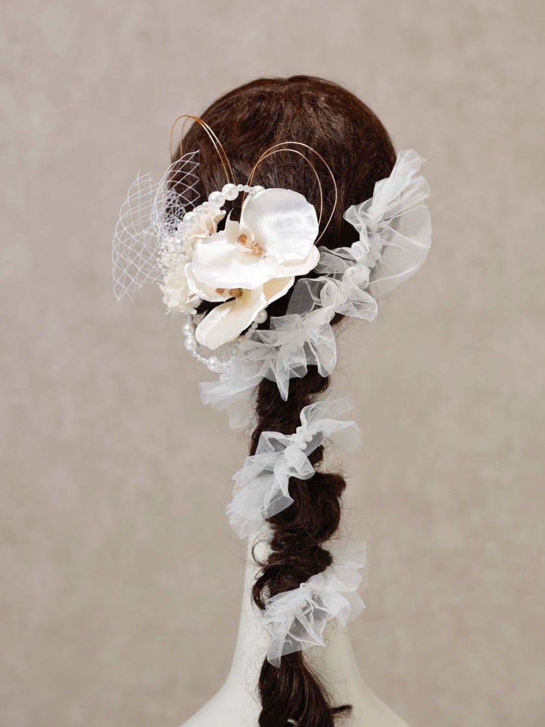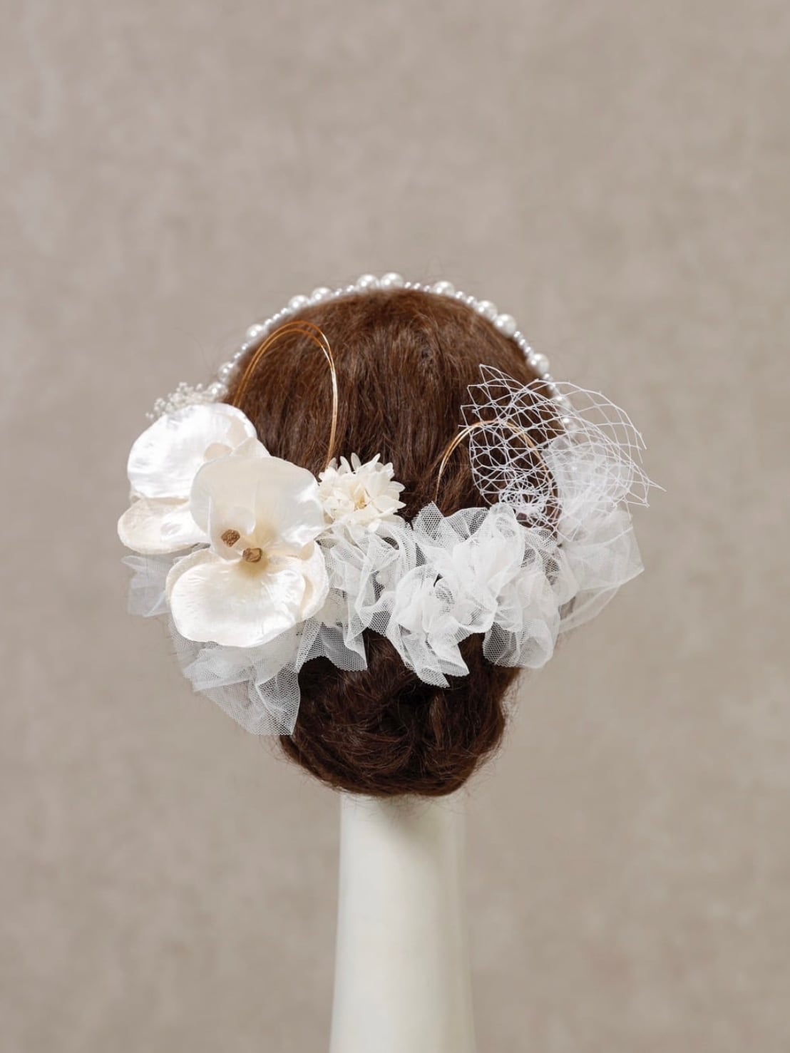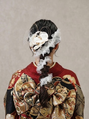 【パール付きフリンジ髪飾り ホワイト】成人式 卒業式 結婚式 k-0127
