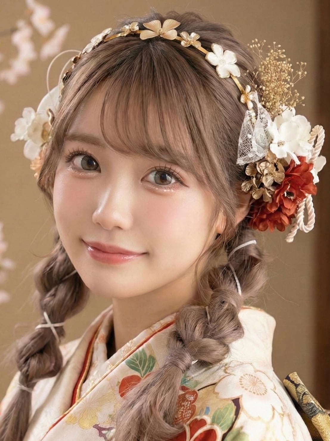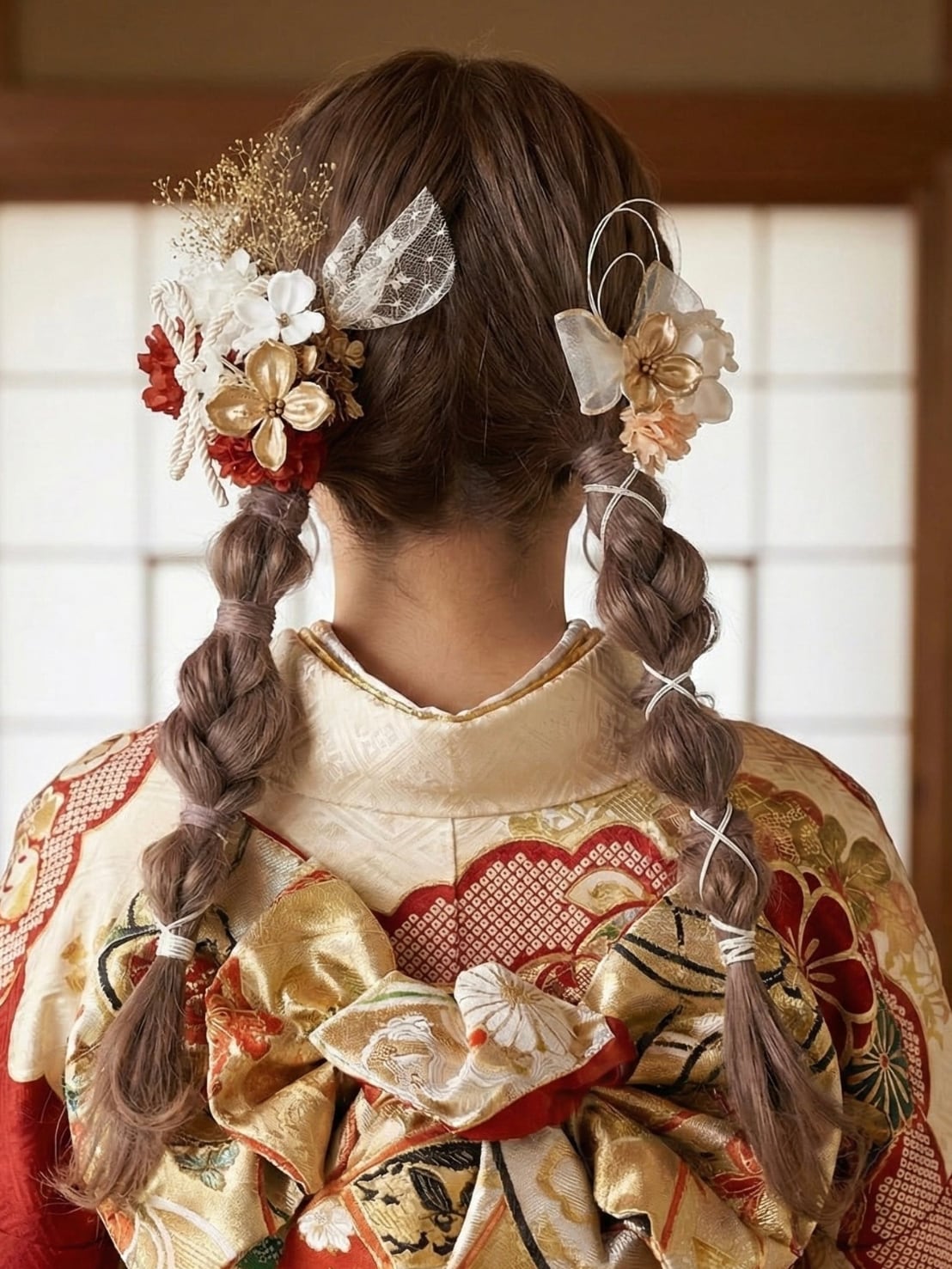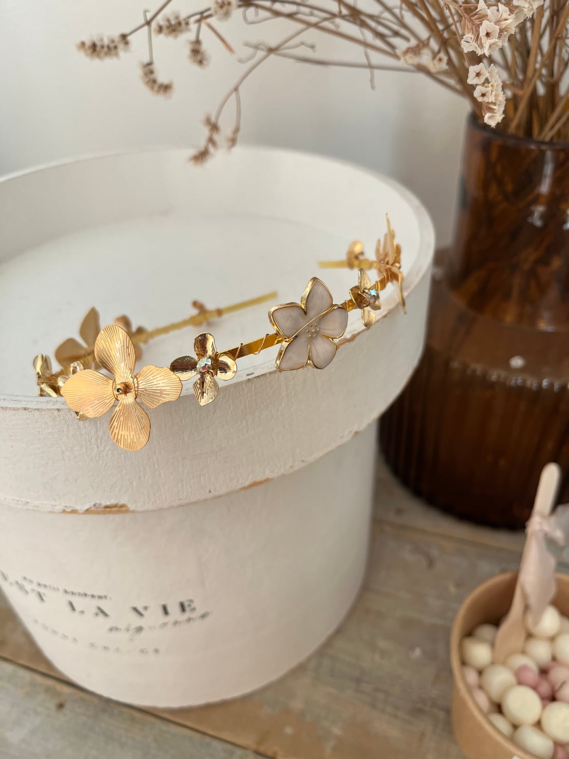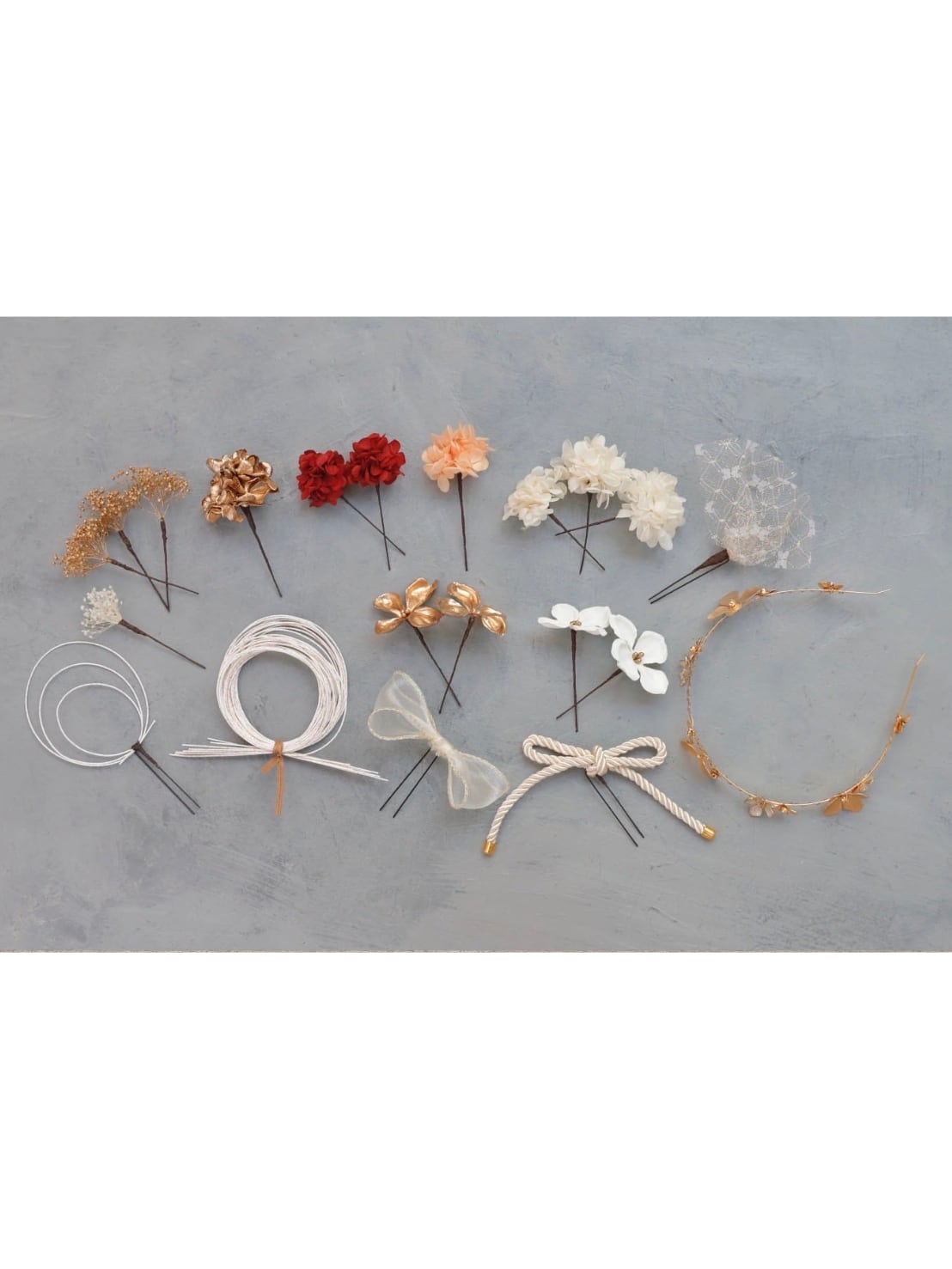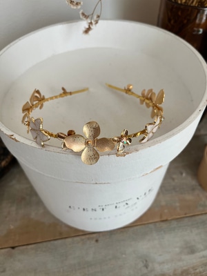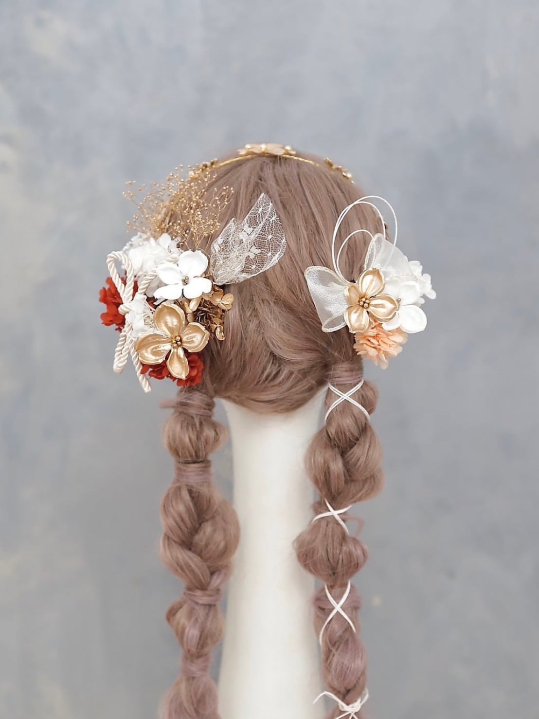 【真鍮フラワーカチューシャ髪飾り ホワイトレッド】成人式 卒業式 結婚式 k-0124