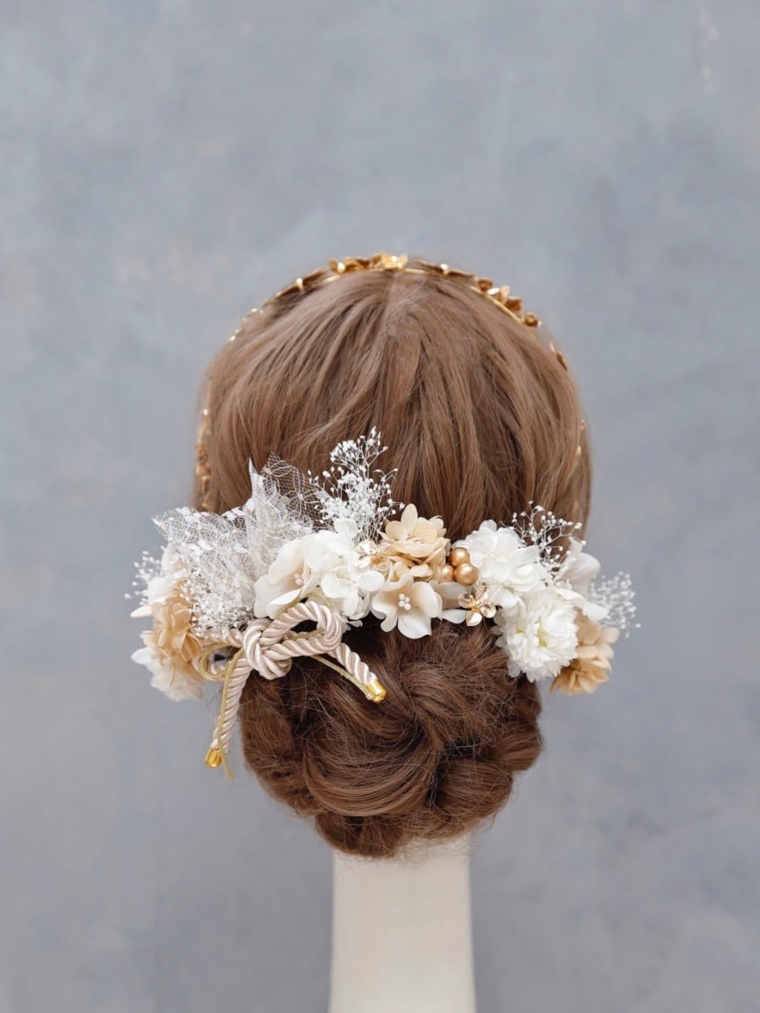 【真鍮フラワーカチューシ髪飾り 】成人式 卒業式 結婚式 k-0136